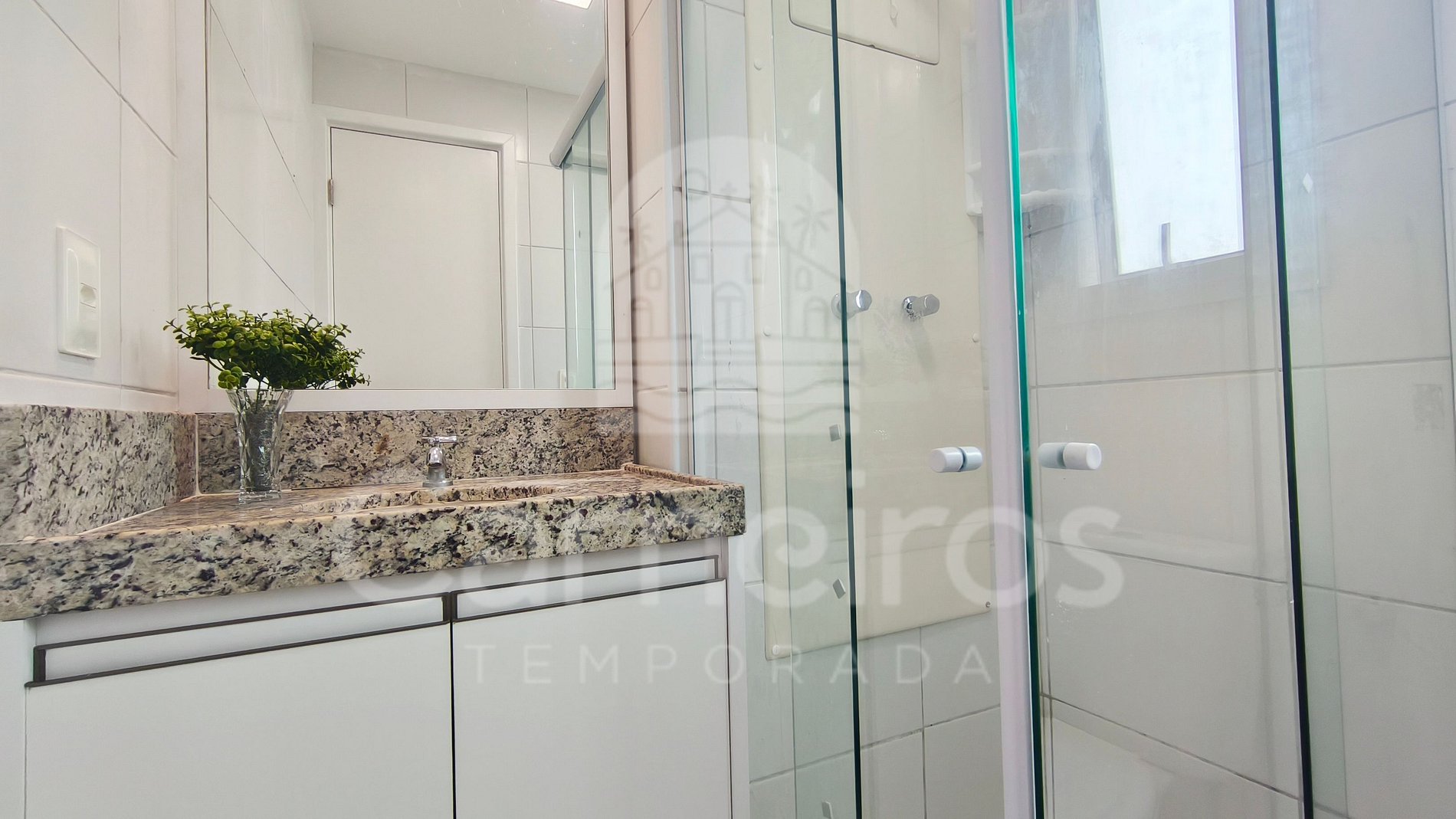 - Suíte 01: 1 cama de casal, armários e ar condicionado Split;