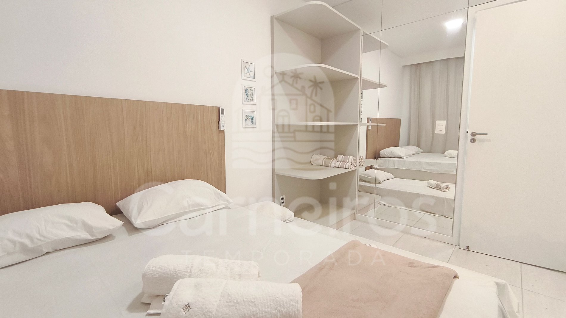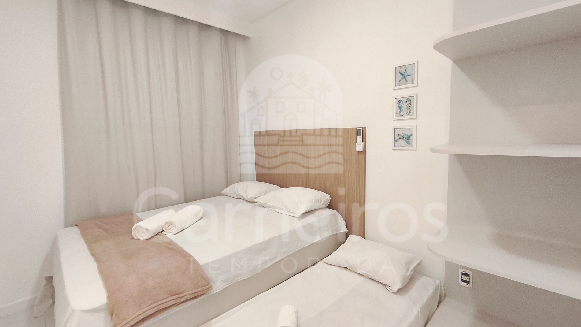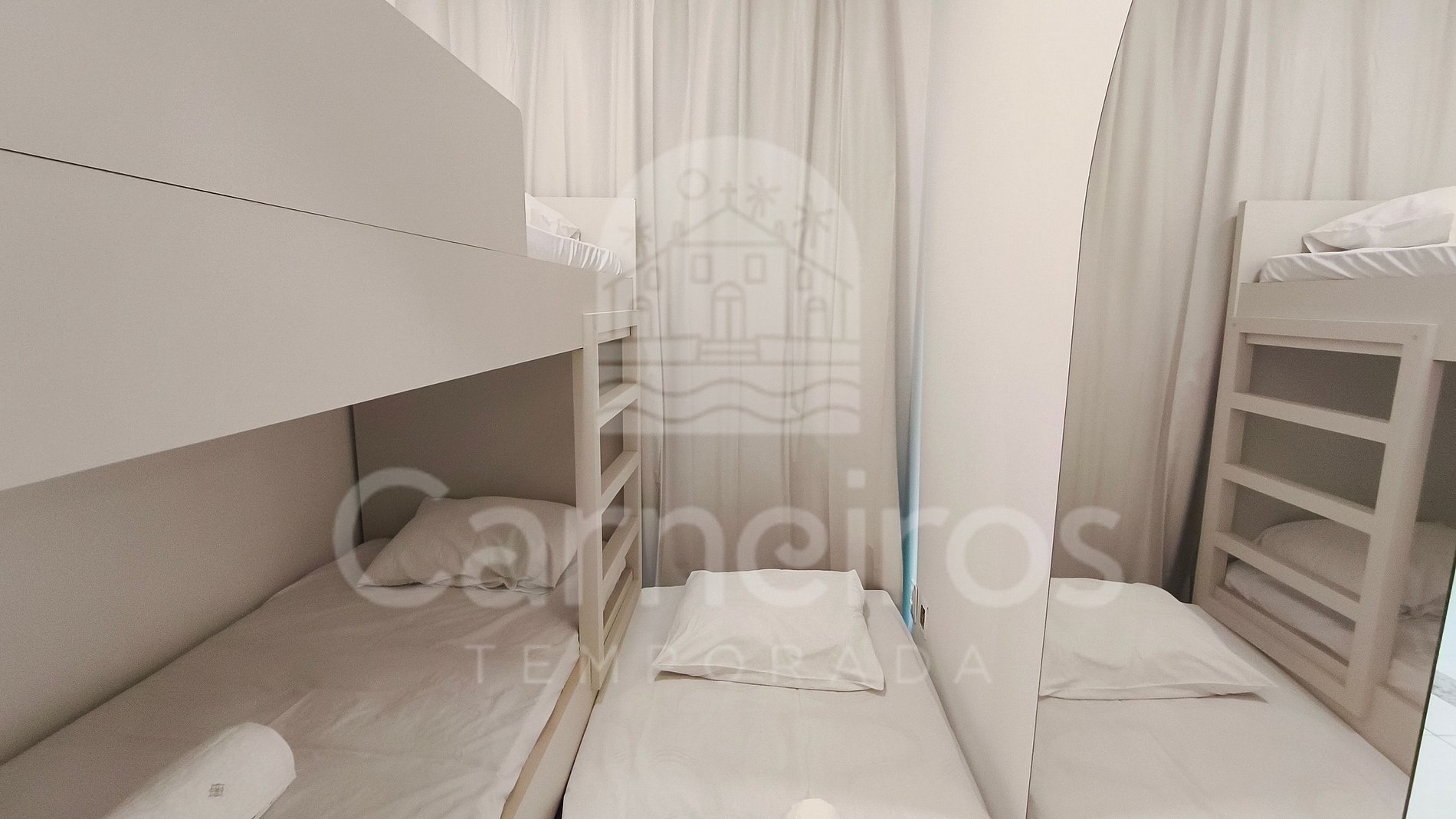 - Quarto 01: 02 camas de solteiro + 1 bicama, ar-condicionado Split, armários;