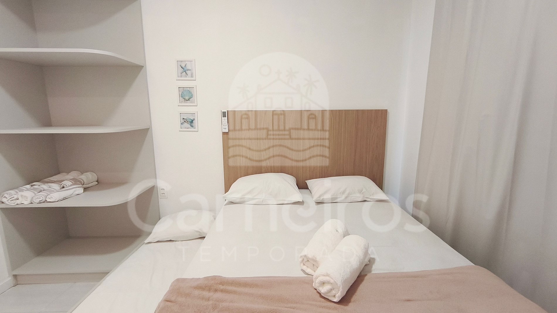 - Suíte 01: 1 cama de casal, armários e ar condicionado Split;