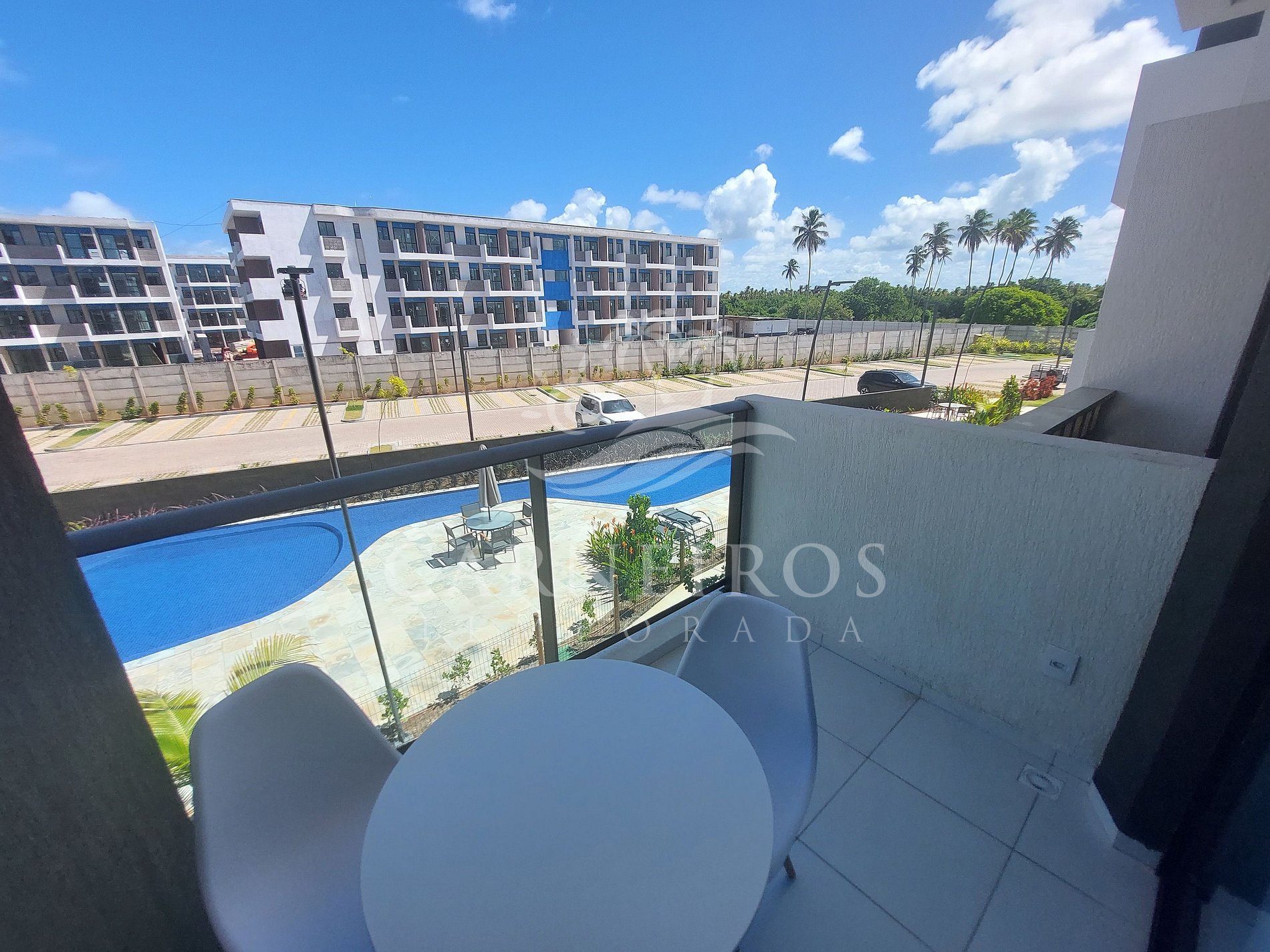 ✹ O flat se encontra no primeiro andar do prédio, possui vista para a piscina e varanda com mesa e 3 cadeiras ✹