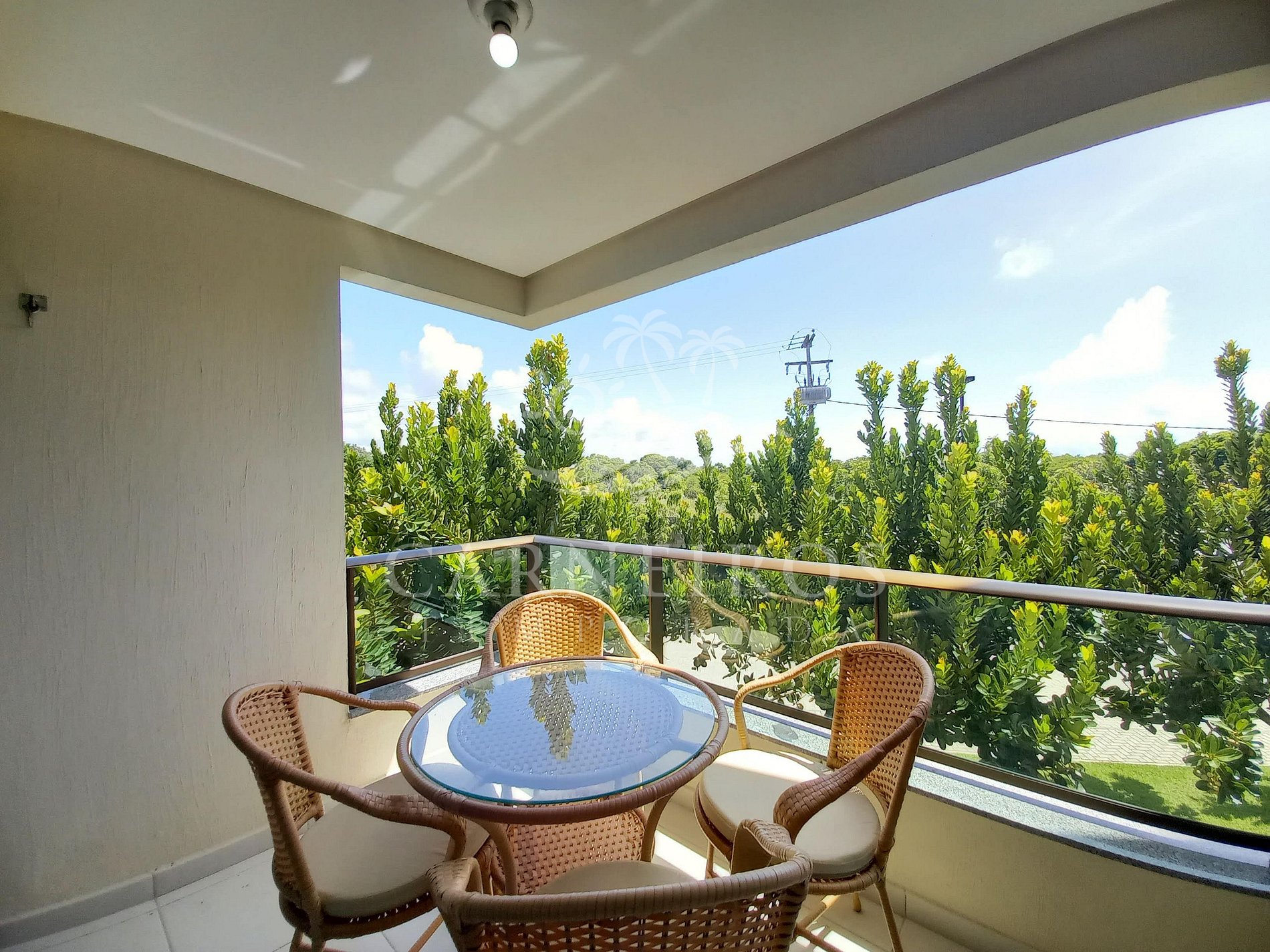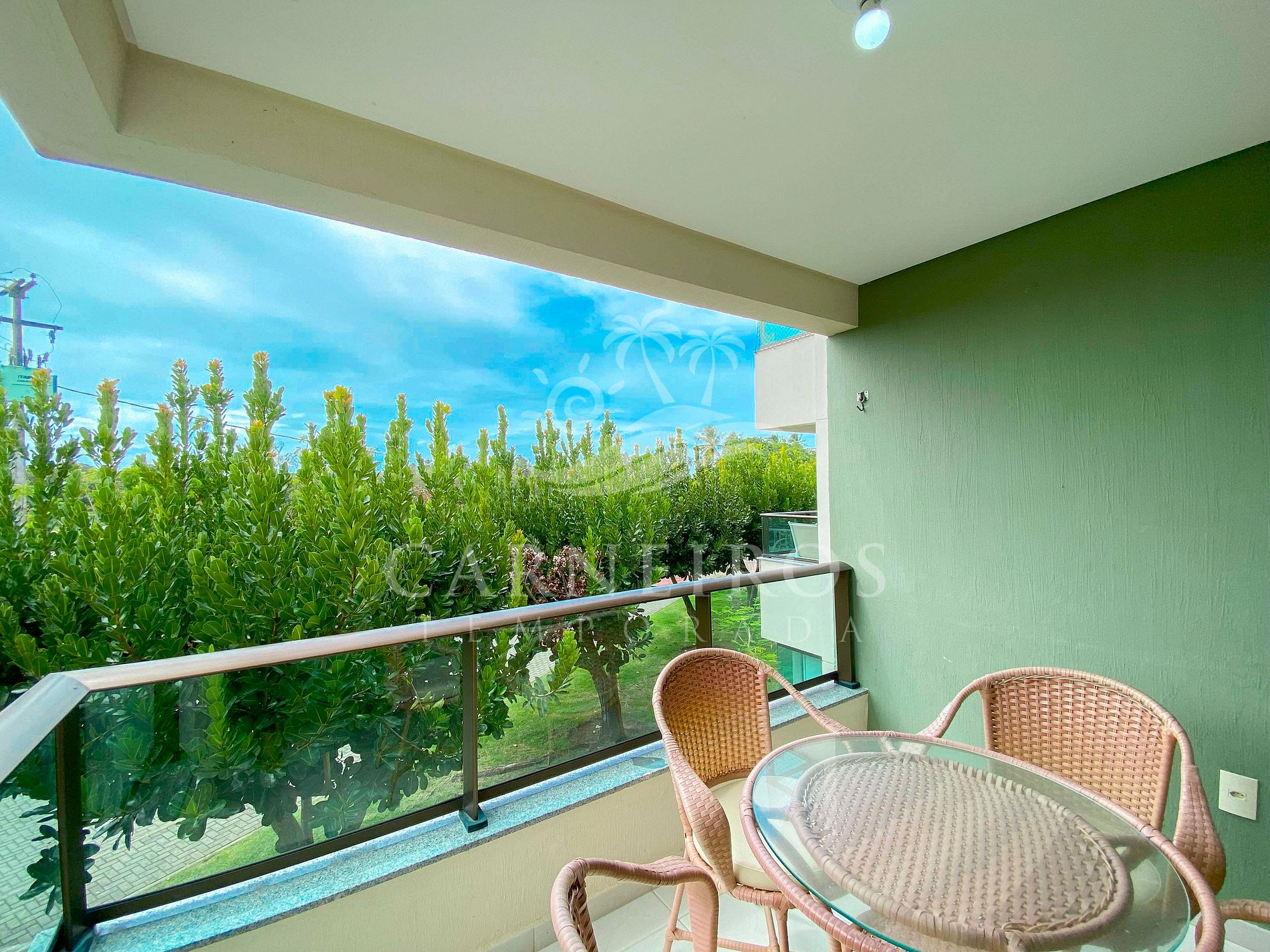 ✹ O flat se encontra no primeiro andar do prédio com vista para o estacionamento e possui uma linda varanda com quatro cadeiras e mesa ✹