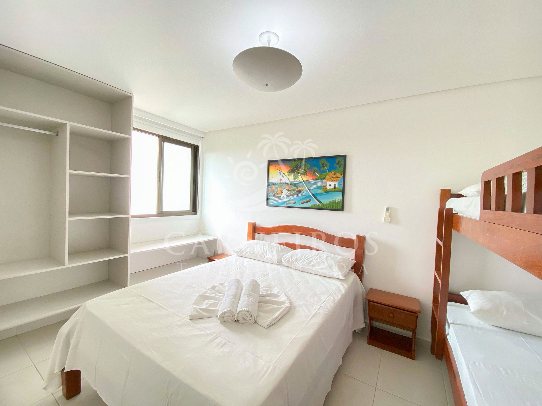 - Quarto 01: 1 cama box queen de casal + 01 beliche (acomoda até 04 pessoas).
