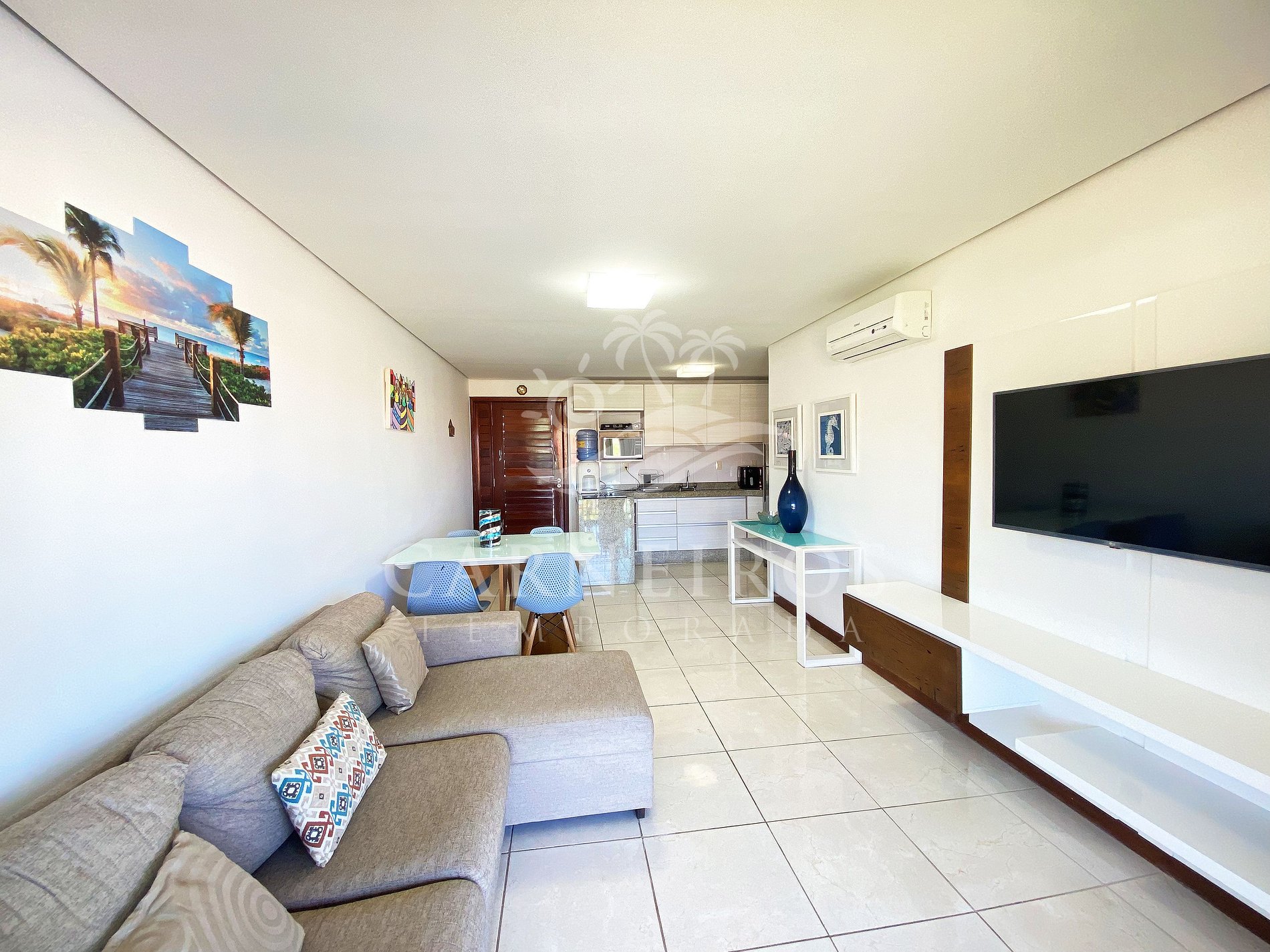 Além da decoração agradável, a sala de estar conta com um sofá-cama casal de solteiro, ar-condicionado e smart TV. A cozinha é completa e equipada com os principais itens como louça, copos, panelas, talheres, geladeira, fogão, forno, micro-ondas, liquidificador, sanduicheira, cafeteira, airfryer, botijão de água/purificador e diversos utensílios. Além disso, possui também mesa de jantar com 04 cadeiras e 01 banheiro completo.
