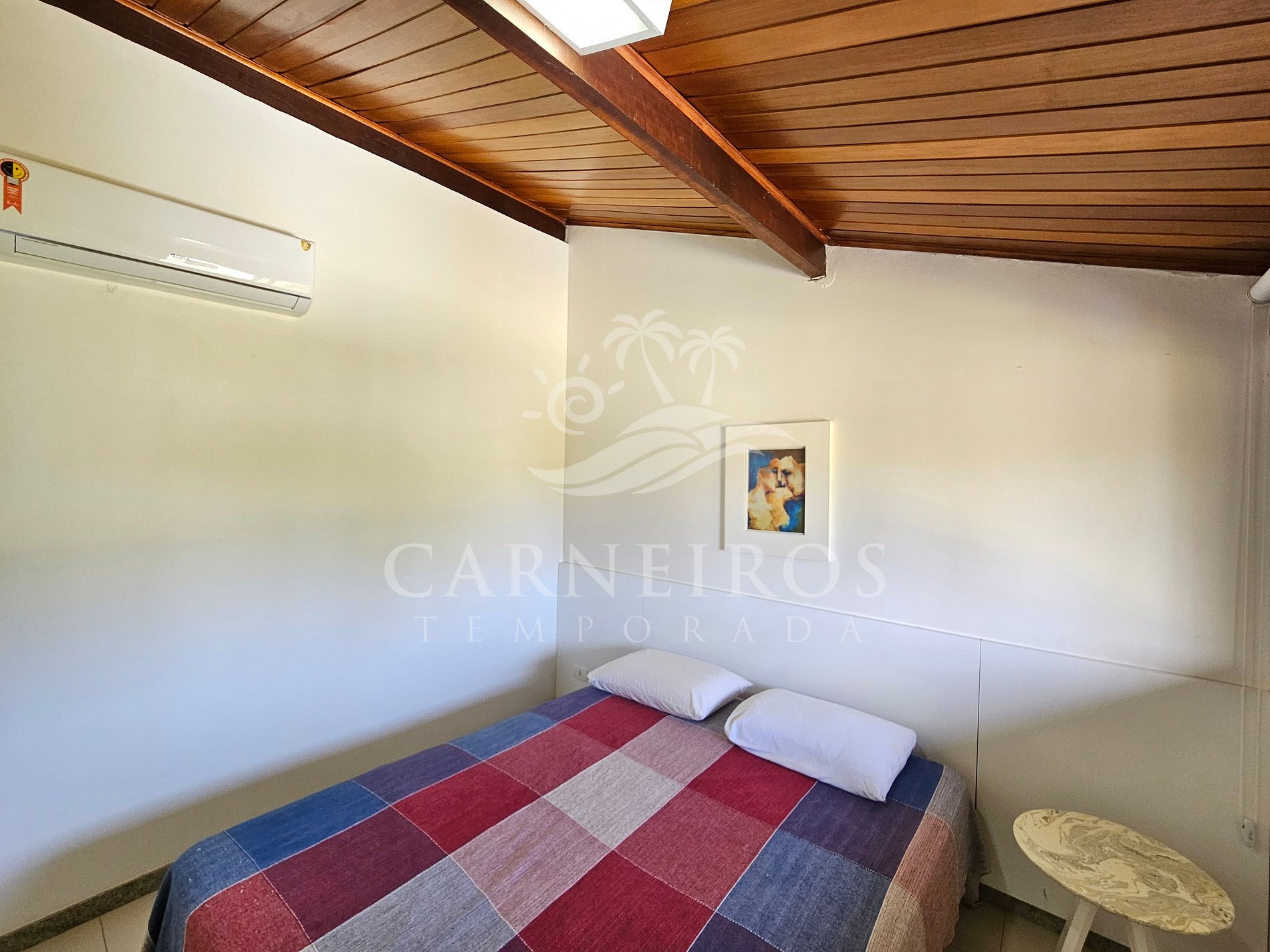 - Suíte 01: 1 cama de casal, armário, ar-condicionado e banheiro;