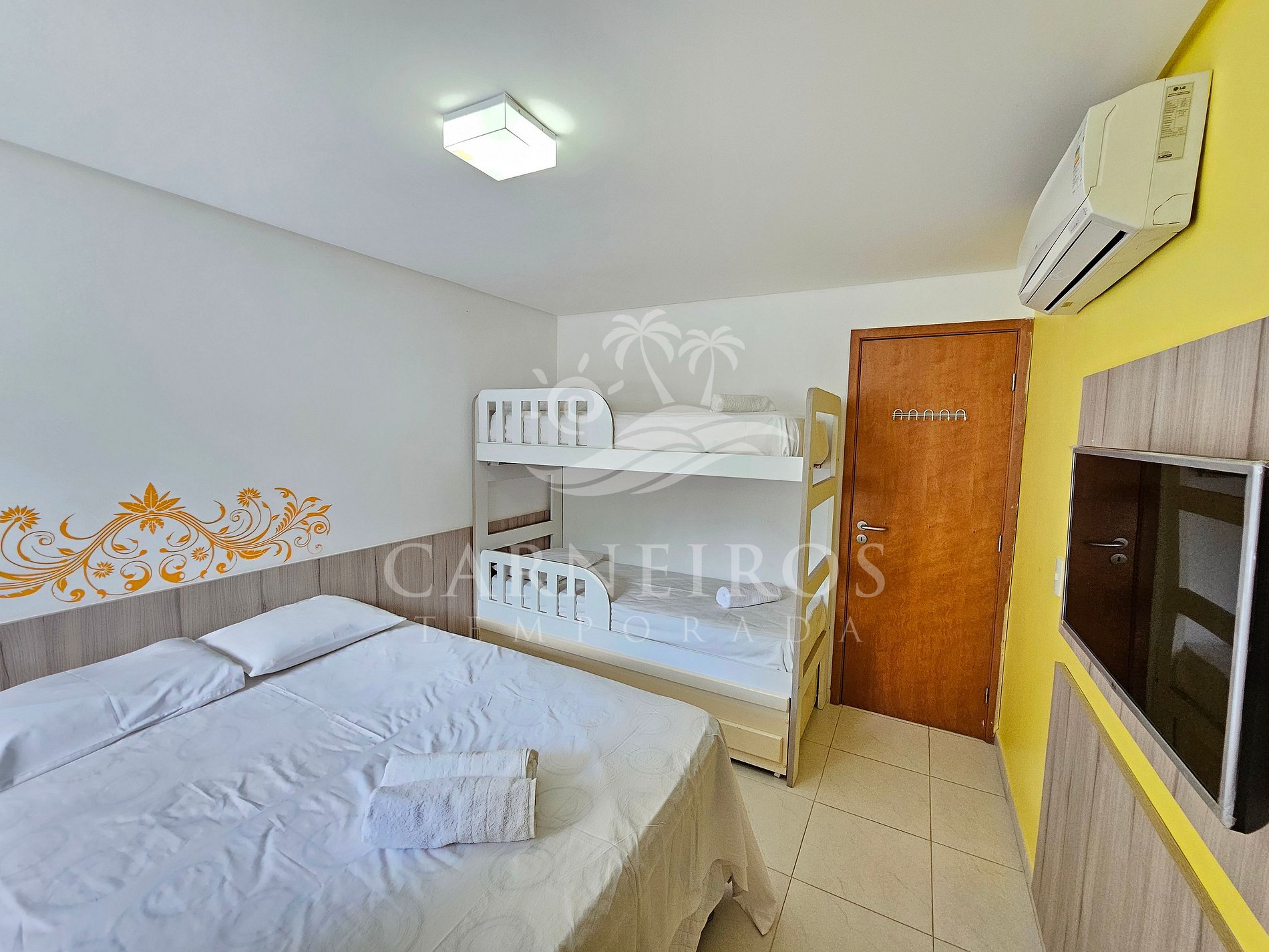 - Quarto: 1 cama casal + 01 beliche , TV, mesa de cabeceira, armários e ar-condicionado.