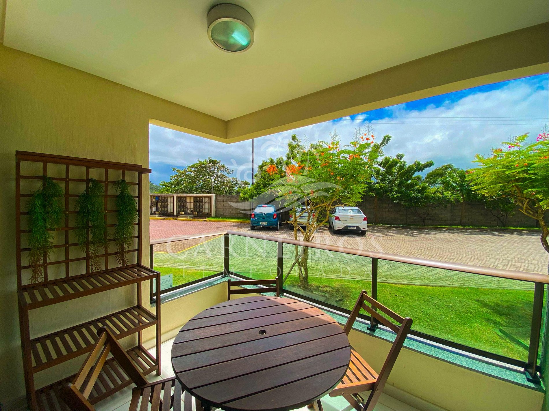 ✹ O flat se encontra no térreo do prédio com vista para o jardim e possui uma linda varanda com quatro cadeiras e mesa ✹
