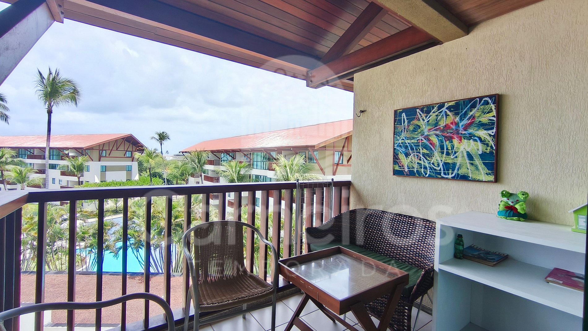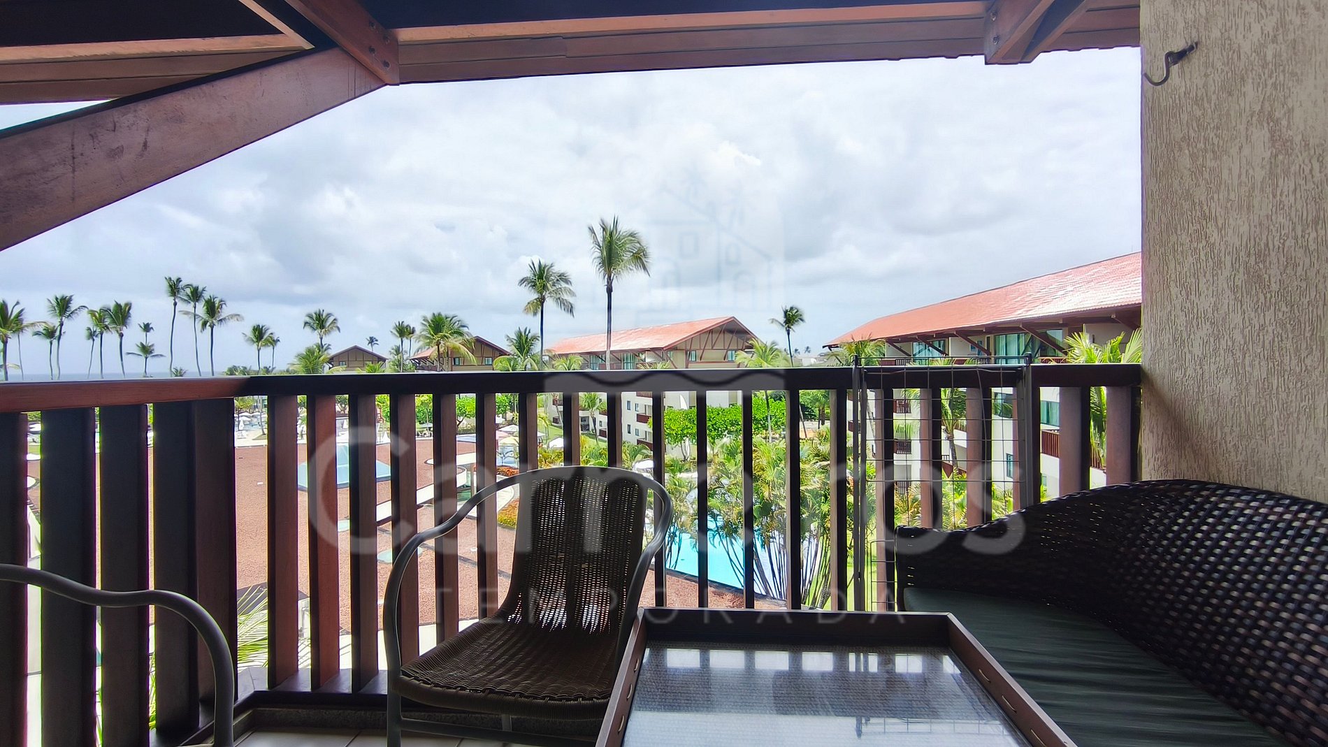 ✹O flat se encontra no quarto andar, acomoda até 06 pessoas e tem 50m2, com vista para a piscina e também uma linda varanda com duas cadeiras e mesa. ✹