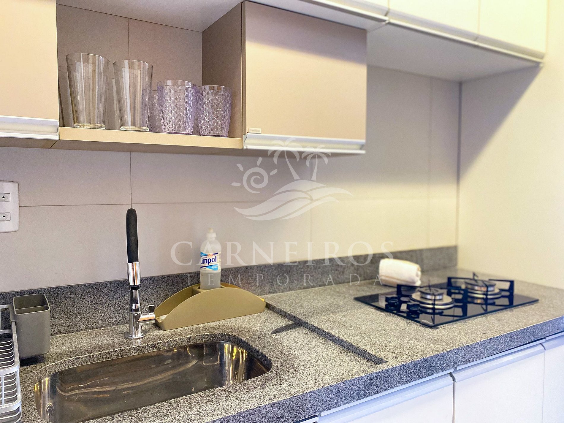 O imóvel possui sofá-cama casal, cama queen, TV, ar-condicionado, adega e cervejeira. A cozinha é completa com geladeira, fogão, micro-ondas, sanduicheira, liquidificador, entre outros utensílios. Também possui um banheiro completo.