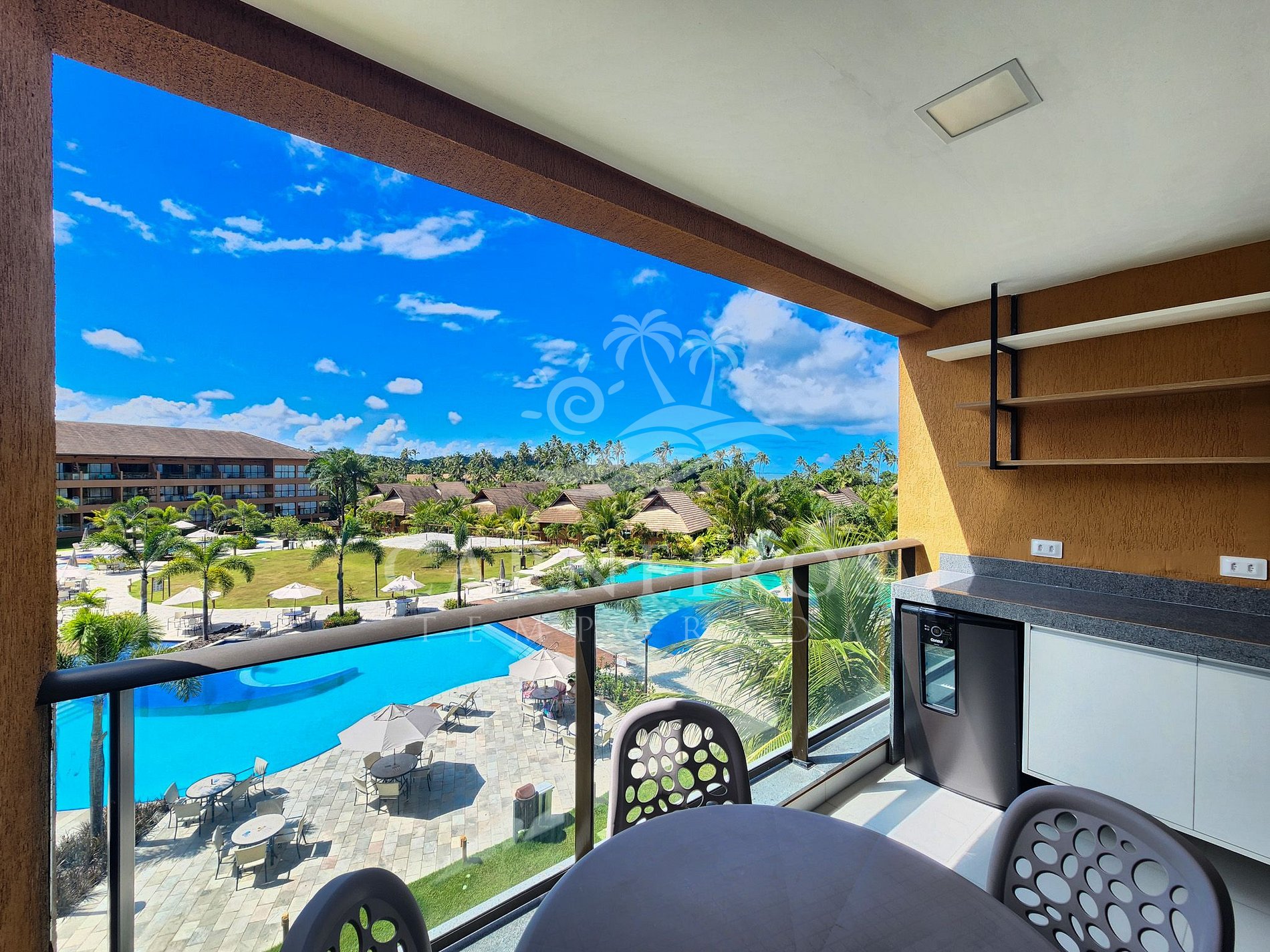 ✹O flat está localizado no primeiro andar, possui vista para a piscina e conta com varanda com mesa e cadeiras ✹