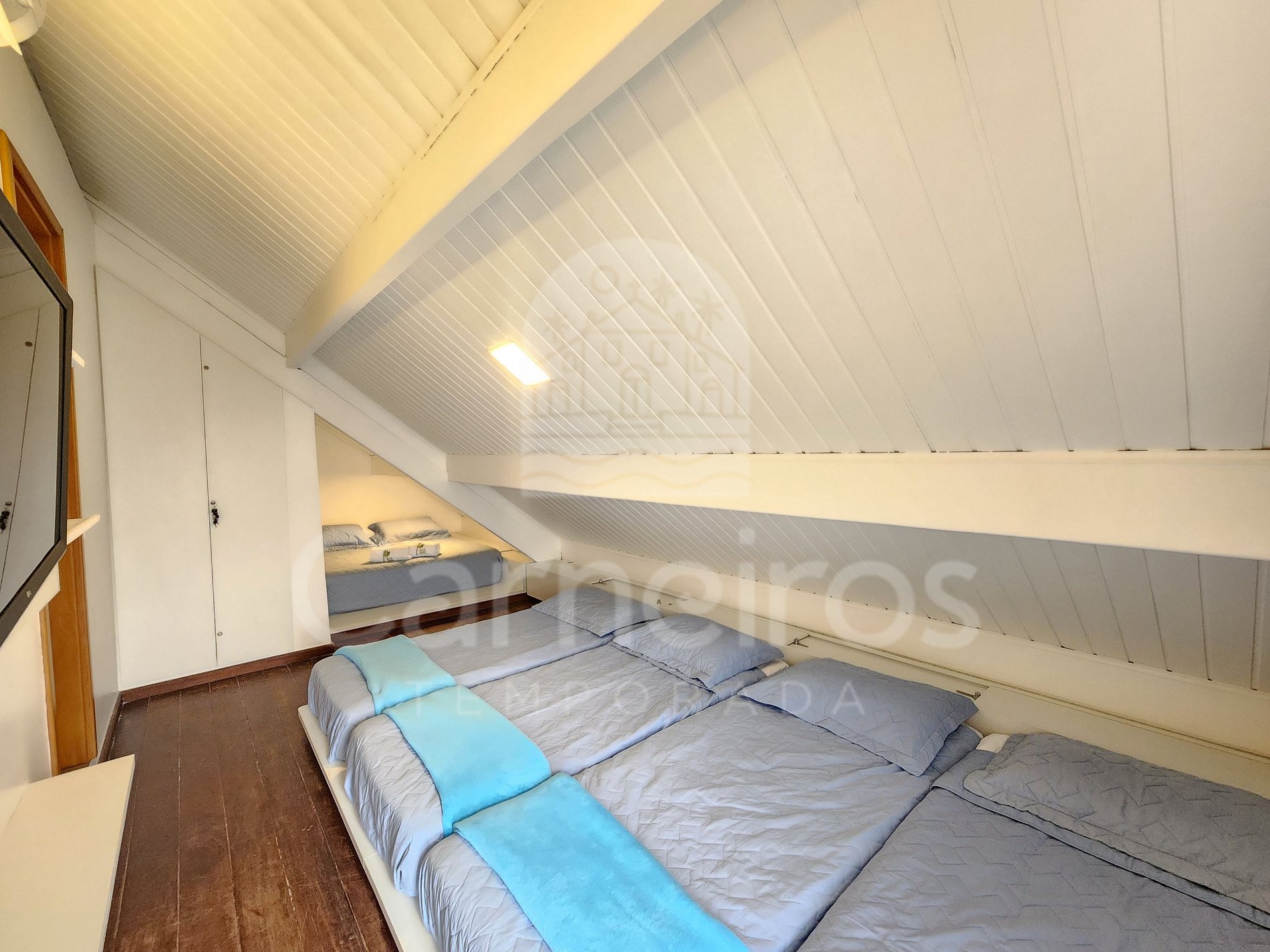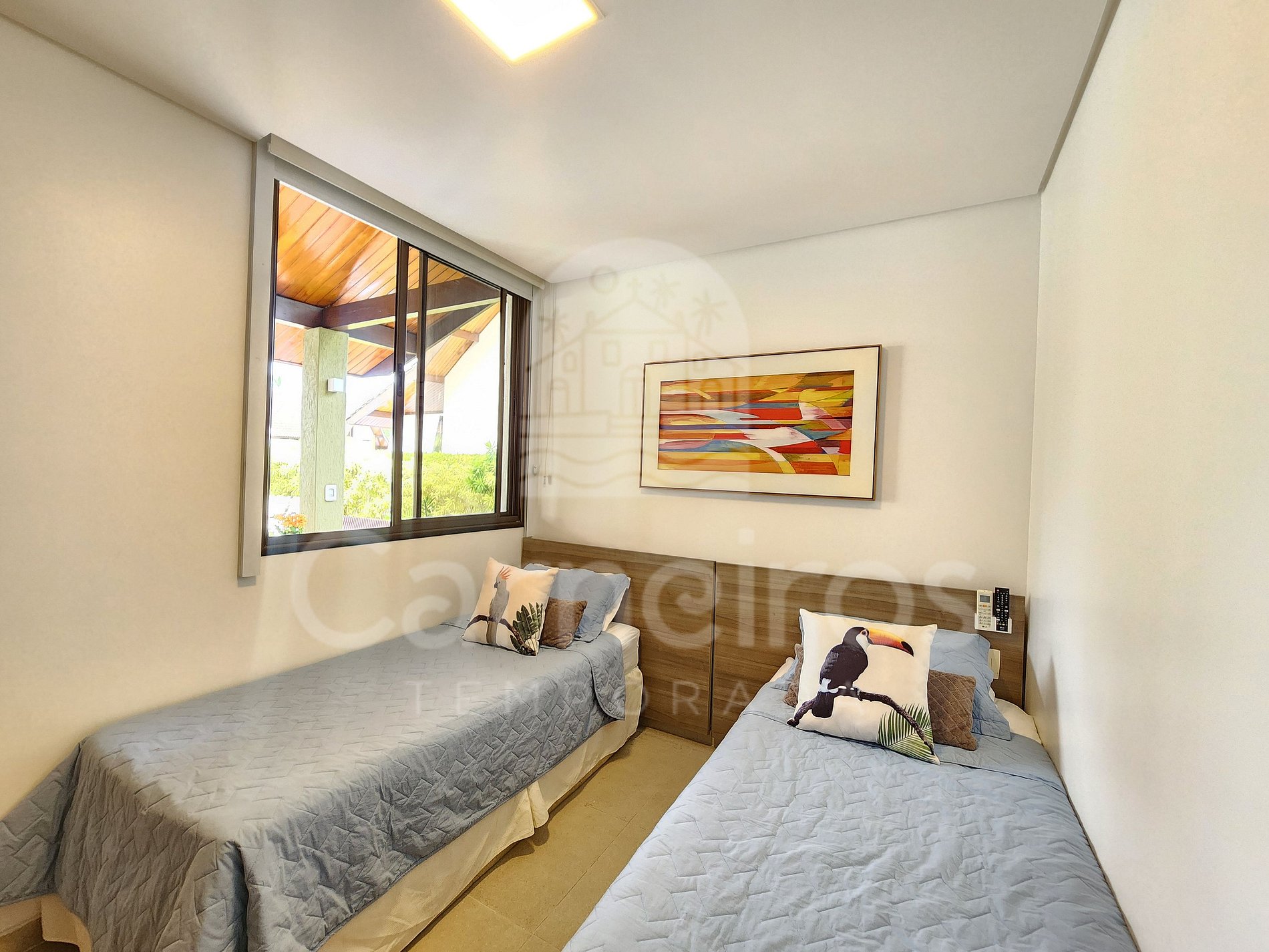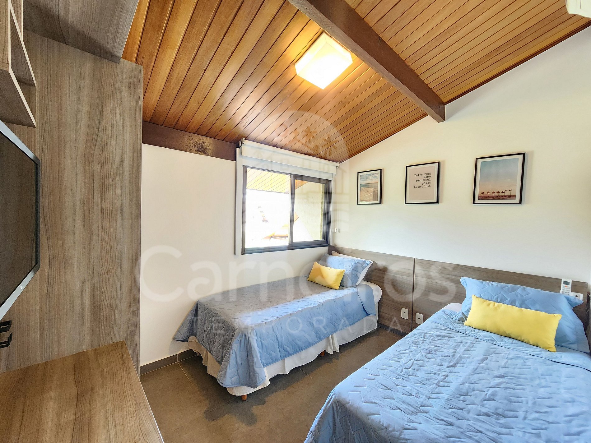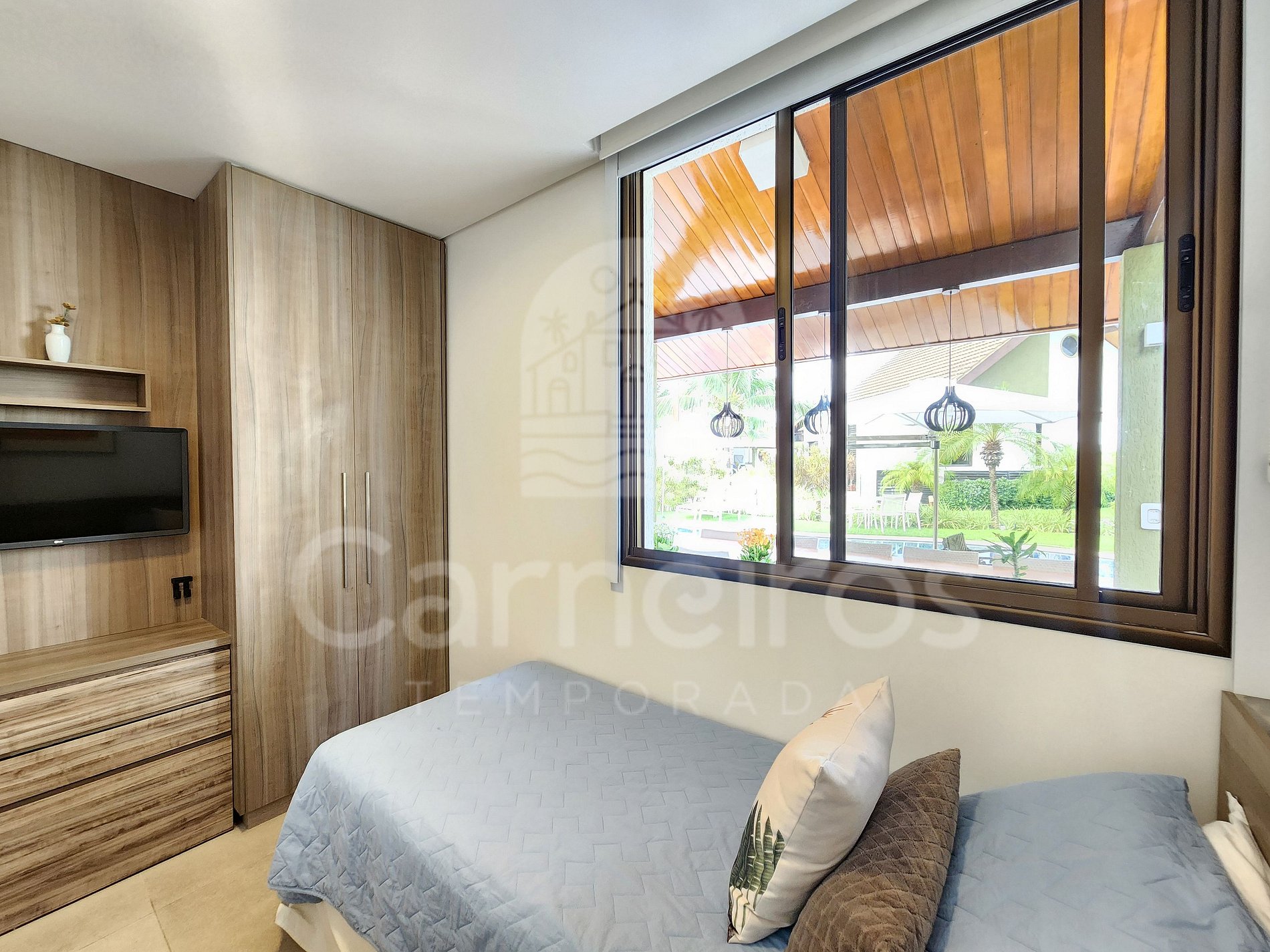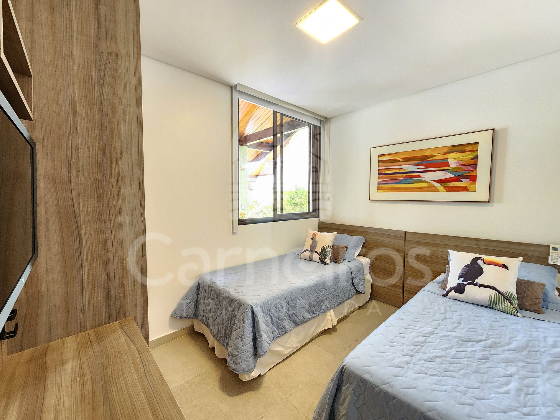 - Quarto 02: 2 camas solteiro, armário, TV e ar-condicionado;