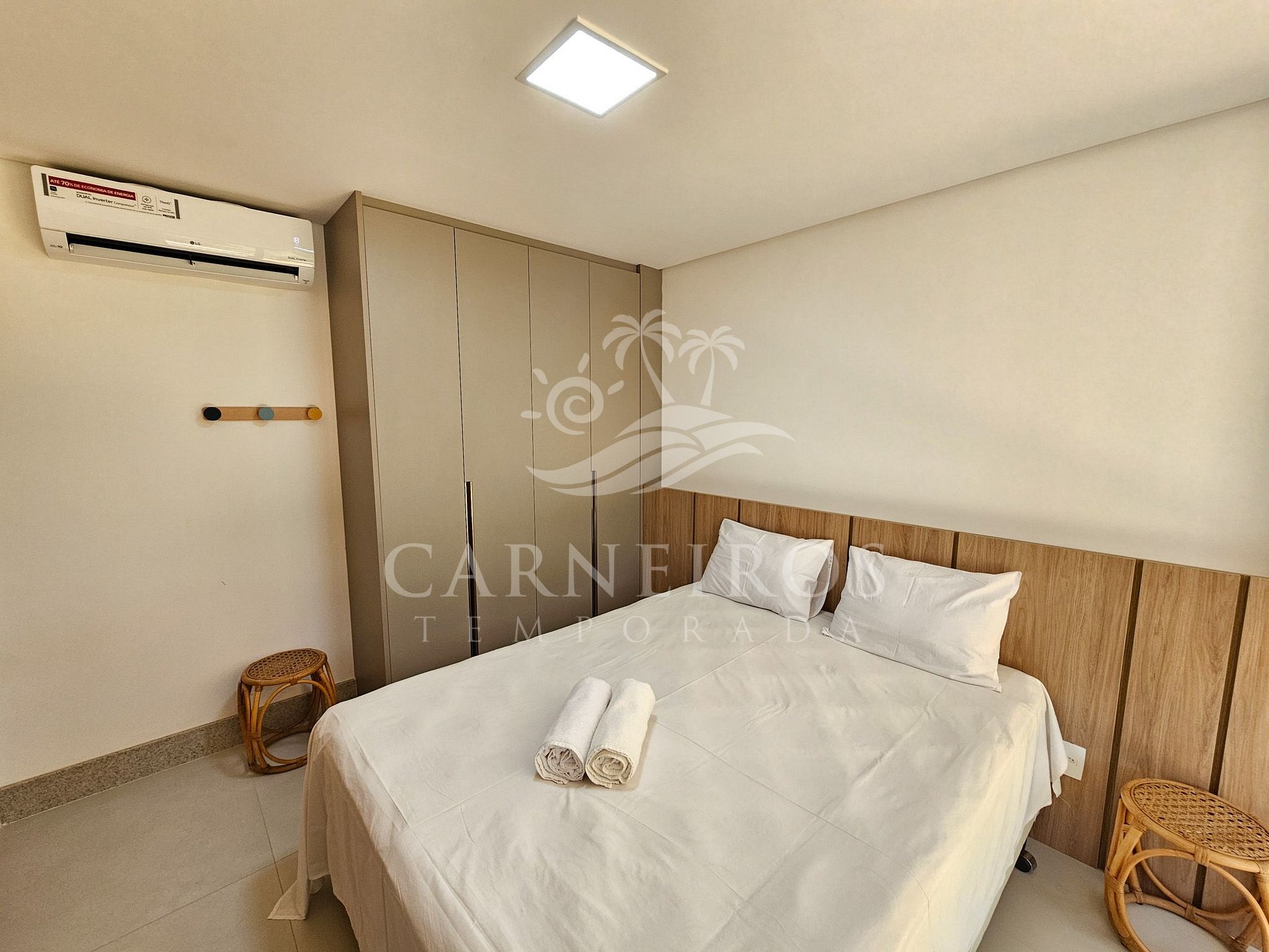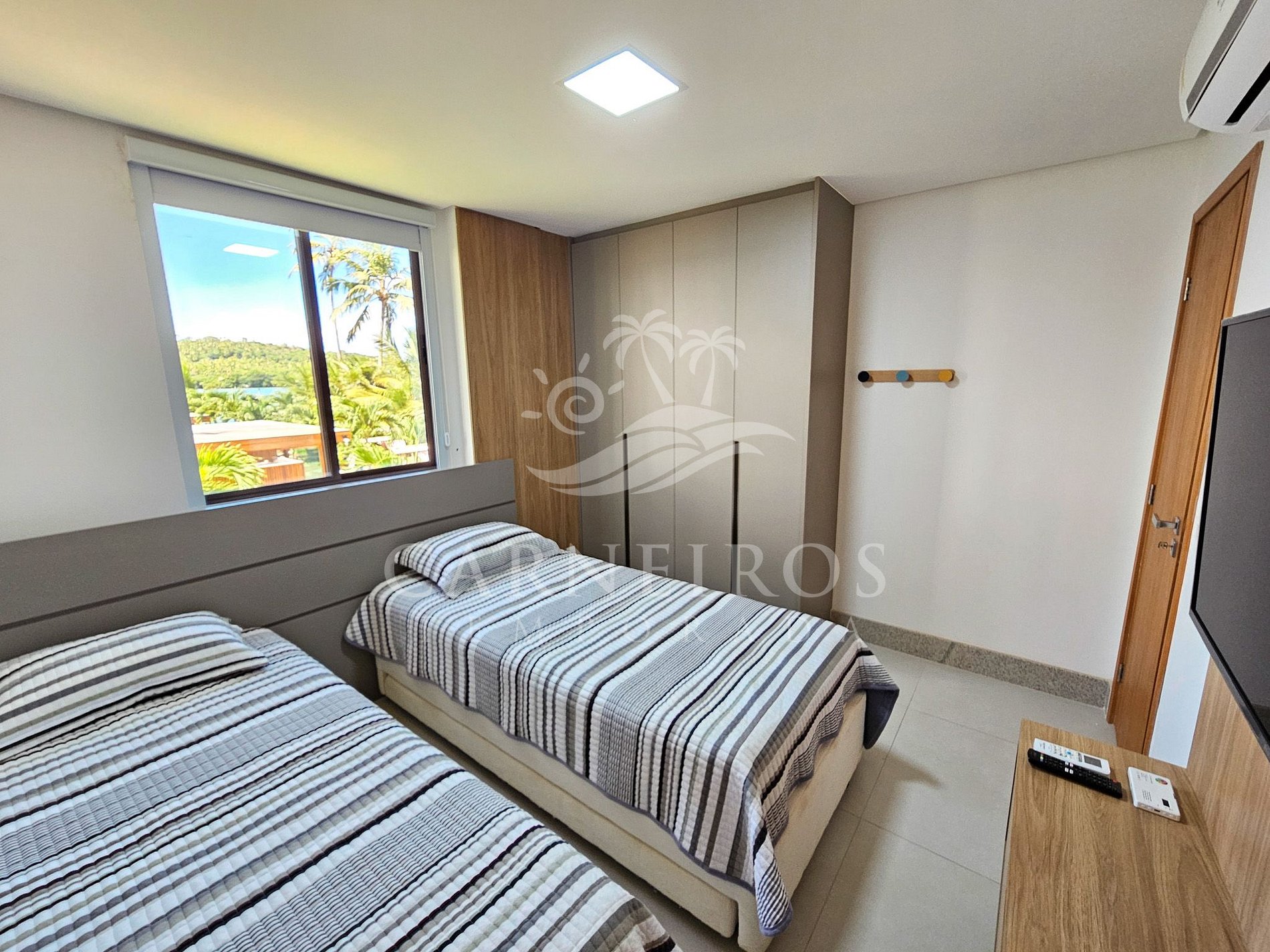 - Quarto: 02 camas de solteiro + 01 colchão, TV, armário e ar-condicionado.