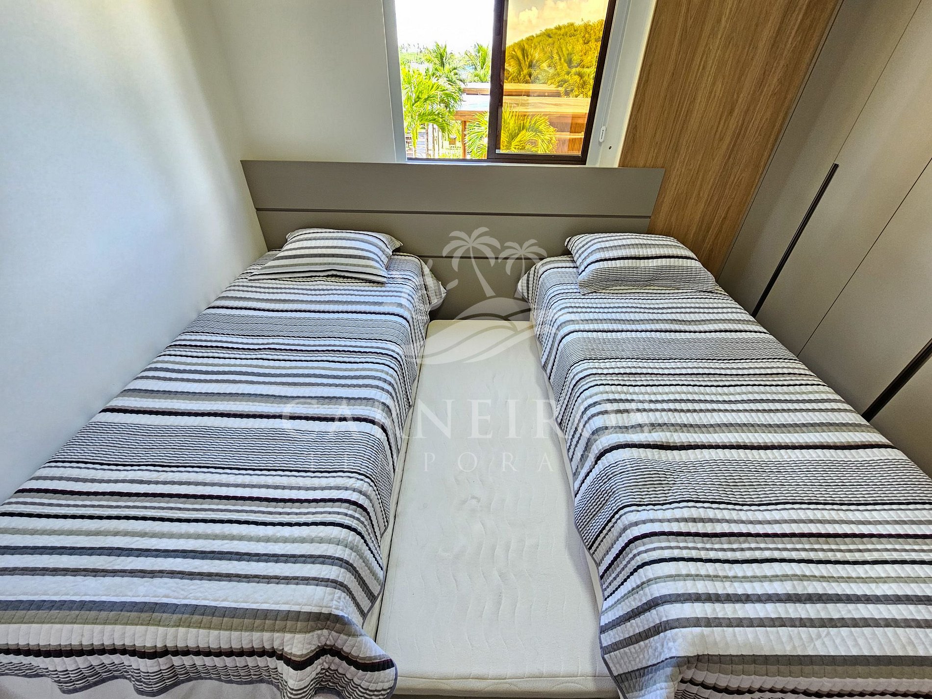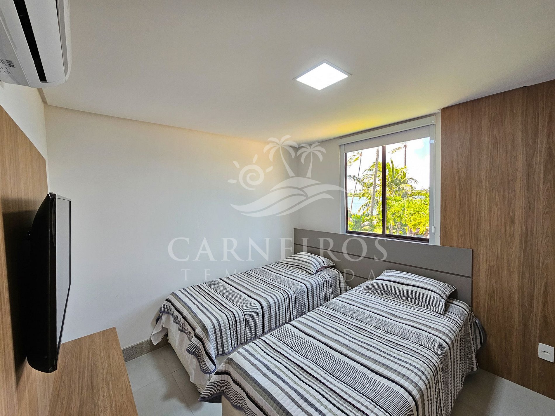 - Quarto: 02 camas de solteiro + 01 colchão, TV, armário e ar-condicionado.