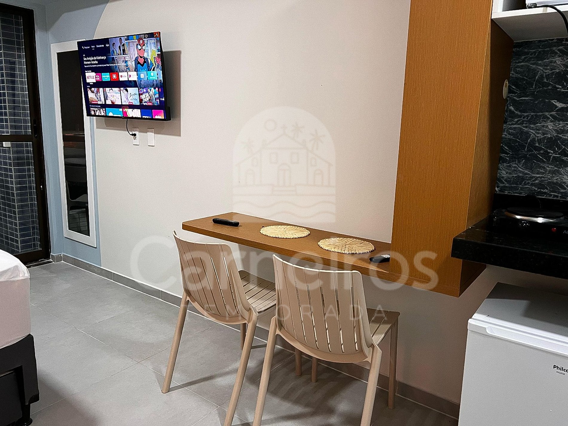 - Este flat é ideal para 03 pessoas, mas pode acomodar até 04.