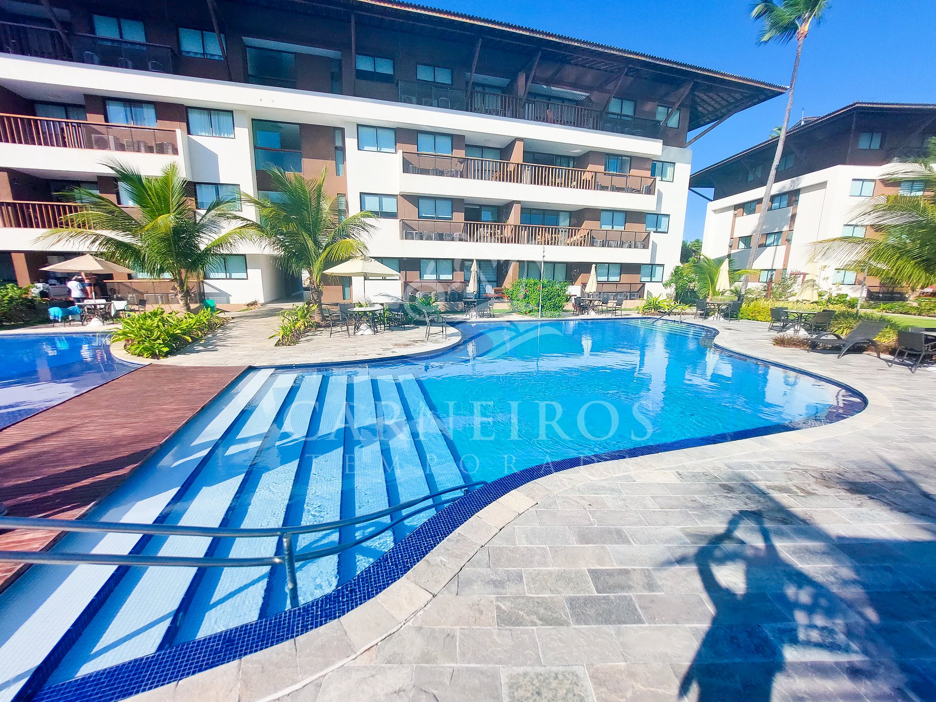 ✹ O flat se encontra no segundo andar do prédio, com vista para o jardim e possui uma varanda com mesa e quatro cadeiras ✹