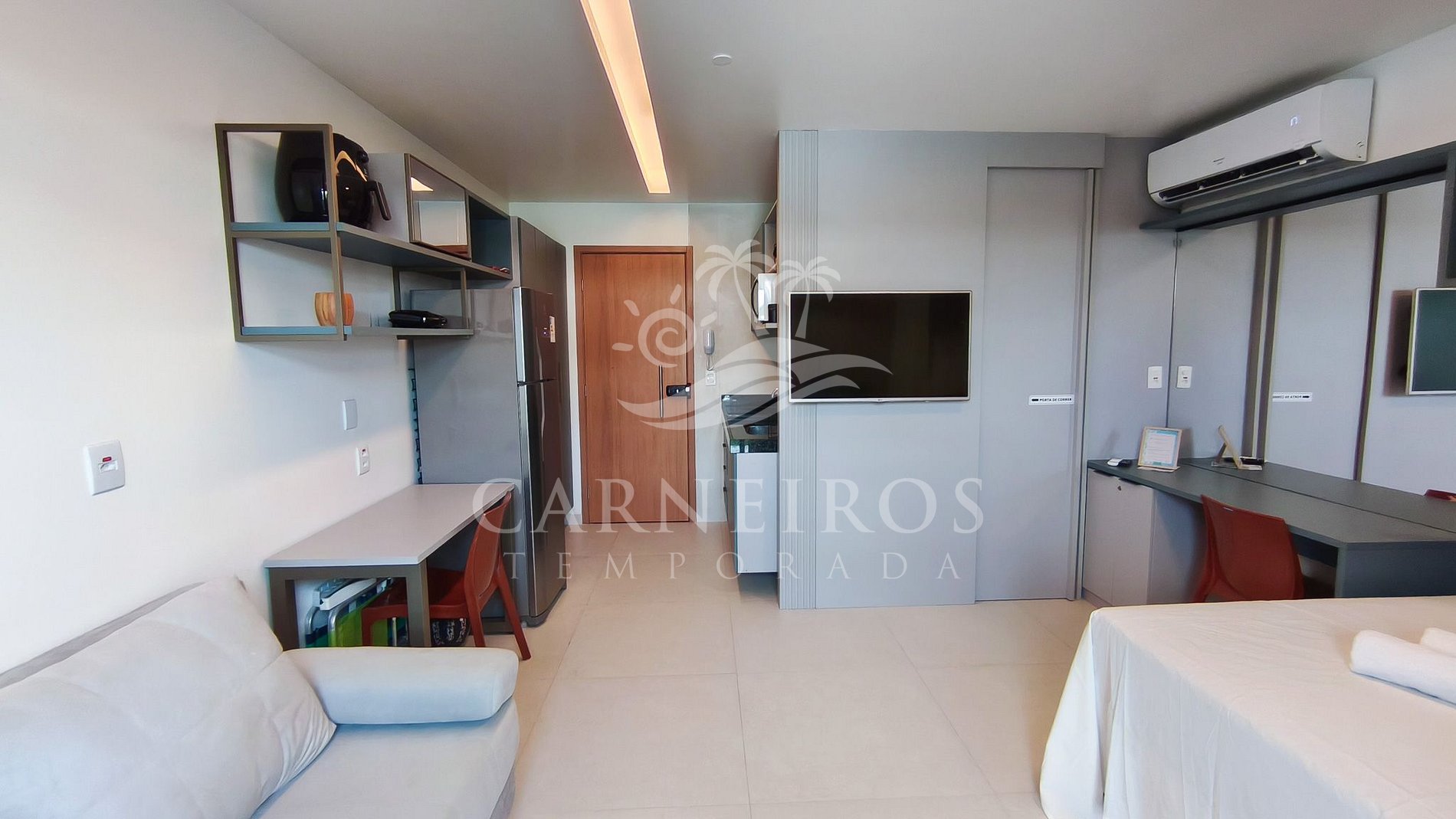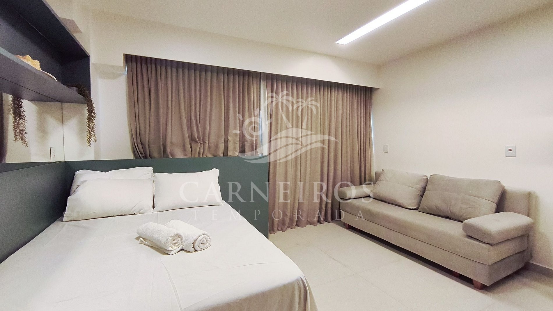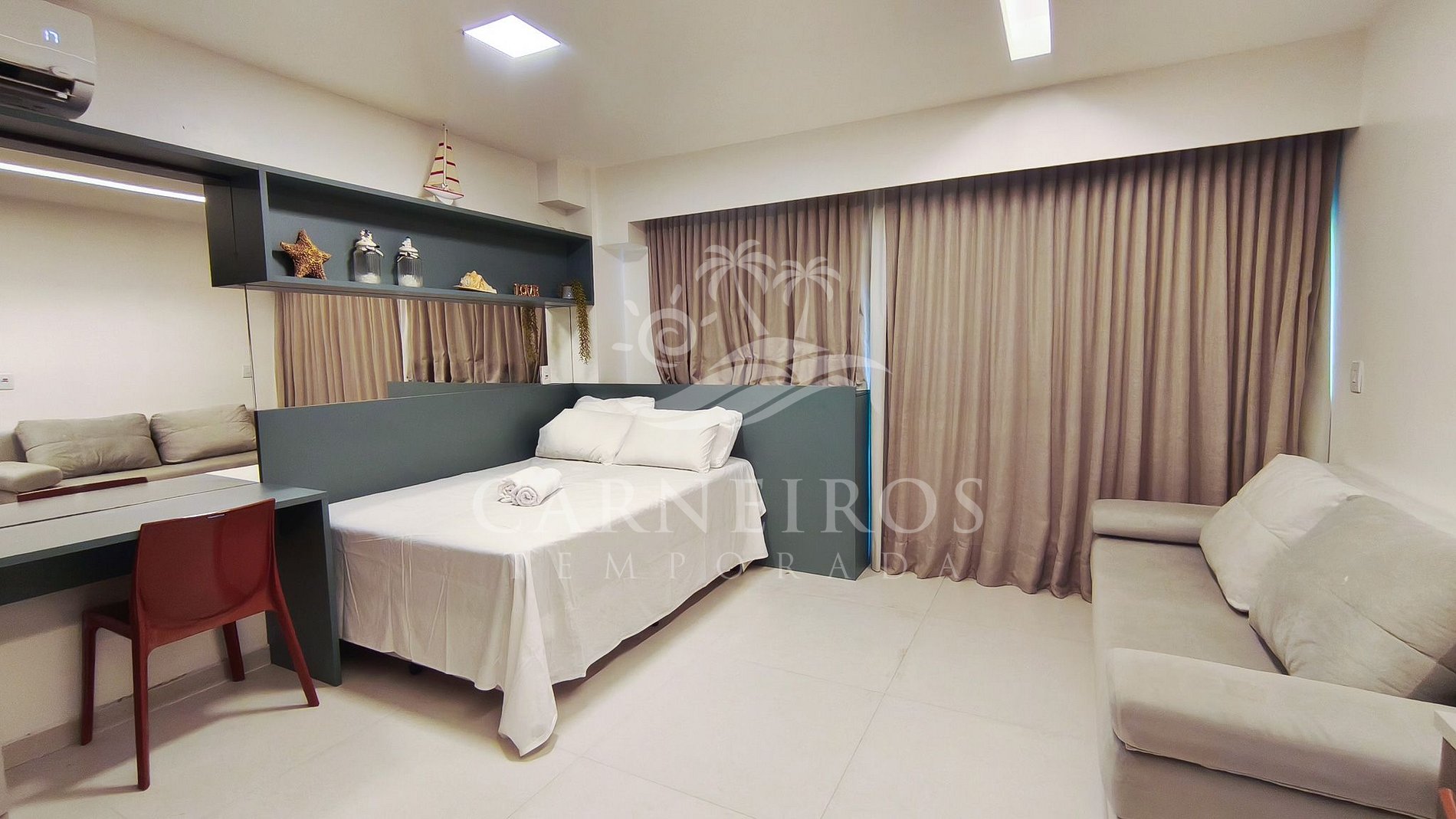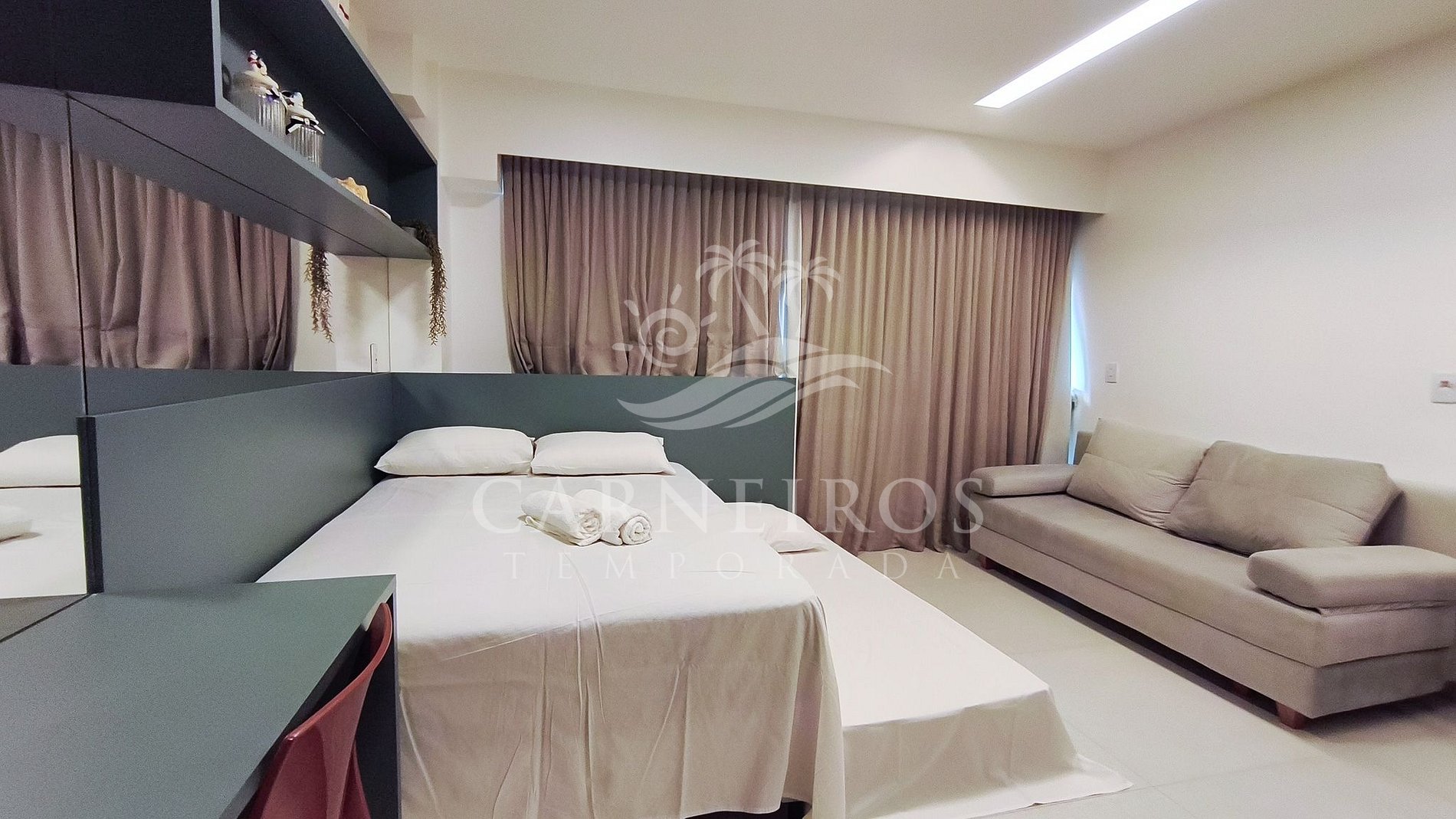 - Estúdio: Cama de casal + Sofá-cama, ar-condicionado e TV.