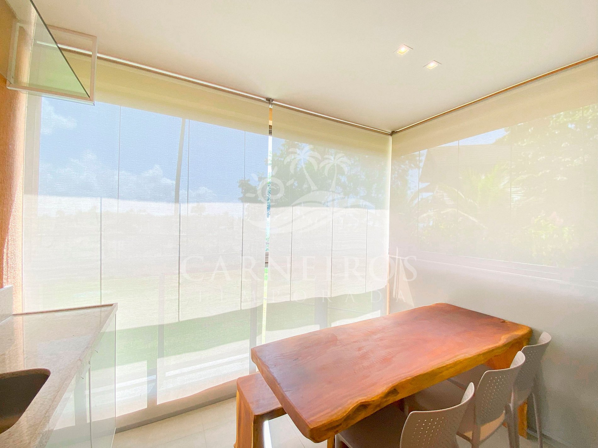 ✹ O flat se encontra no andar térreo do bloco Colinas e possui uma linda varanda gourmet com vista para a praia ✹