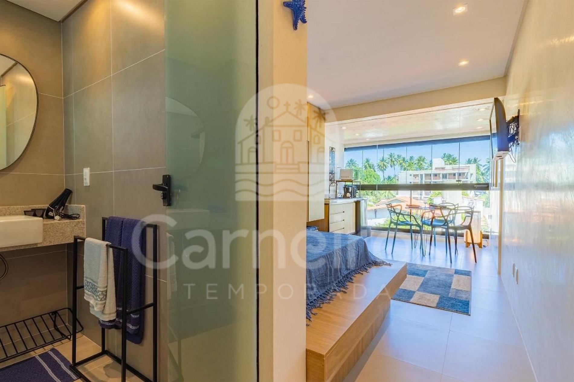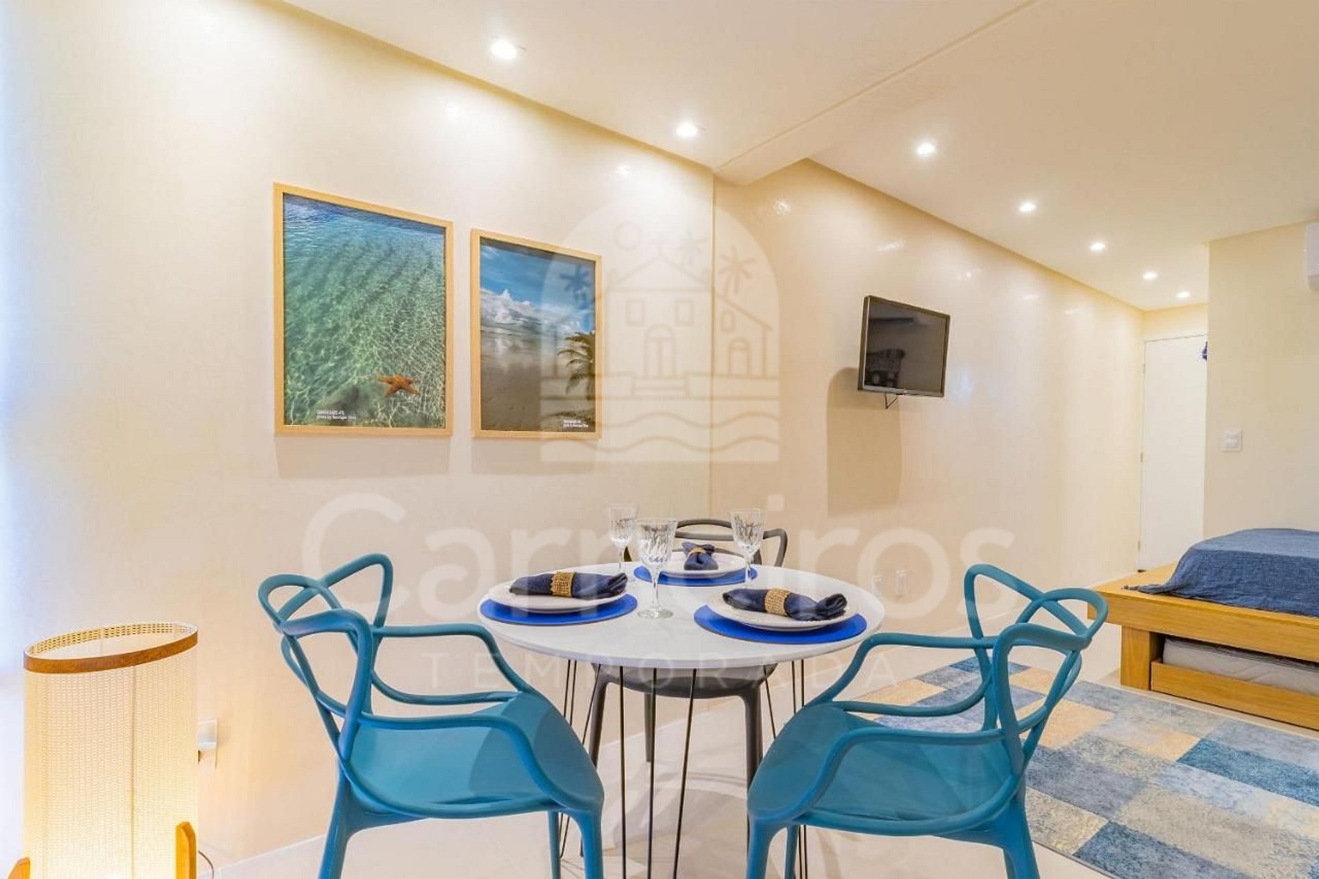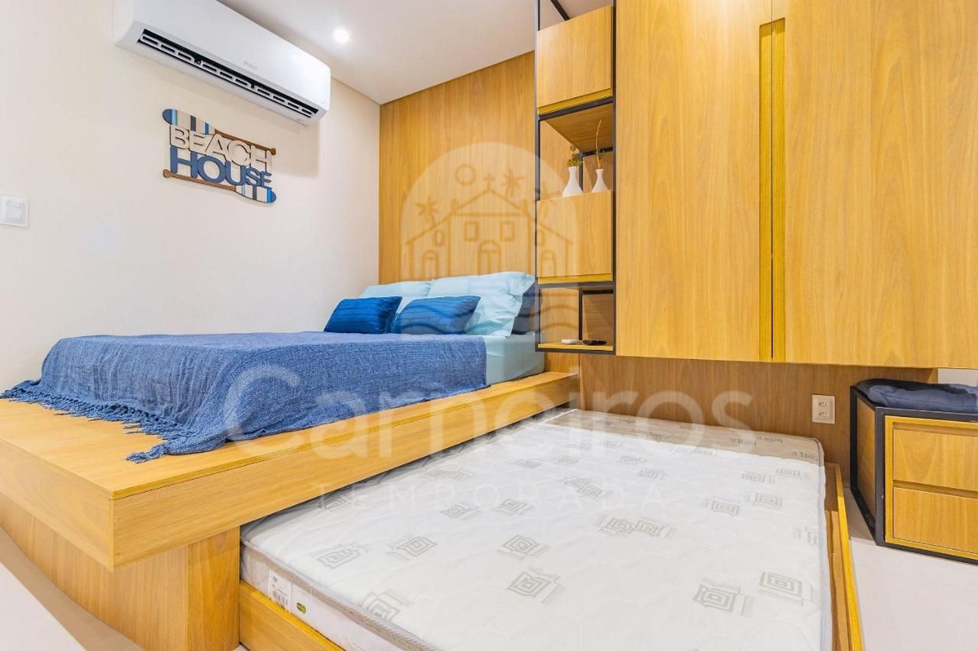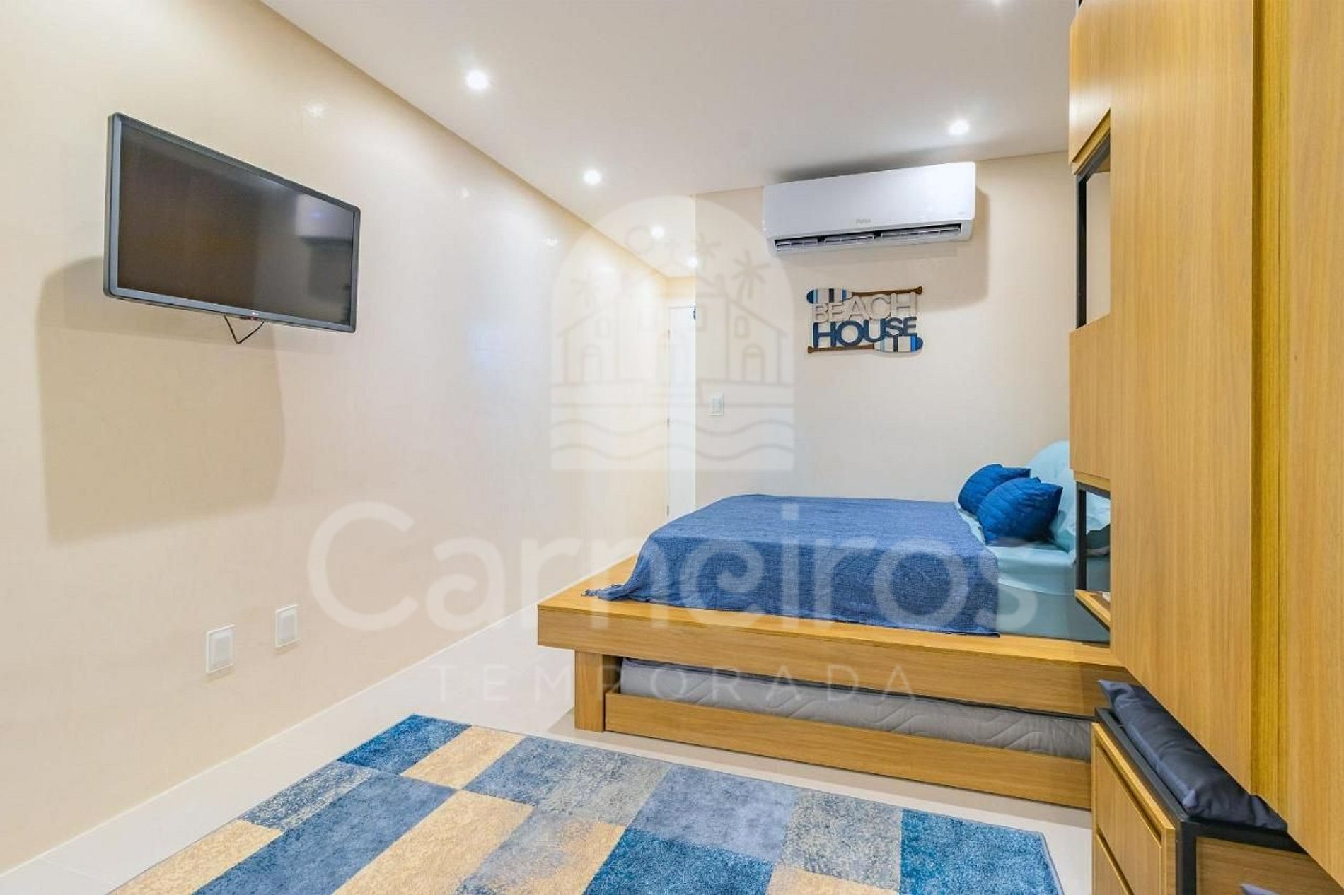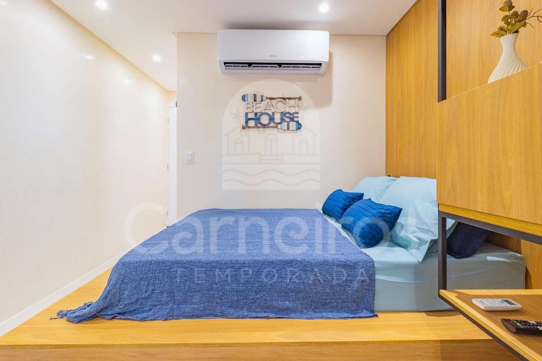 - Estúdio: 1 cama casal + 1 bicama casal, TV e ar-condicionado.