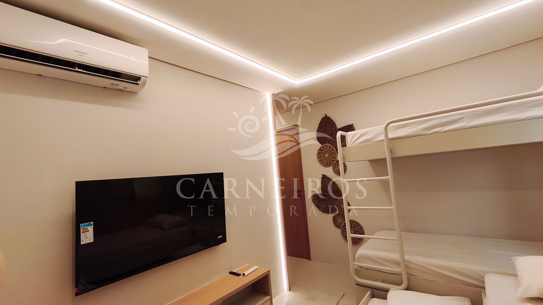 - Quarto 2: 01 beliche + 01 cama solteiro + 01 bicama, TV, armário e ar-condicionado;