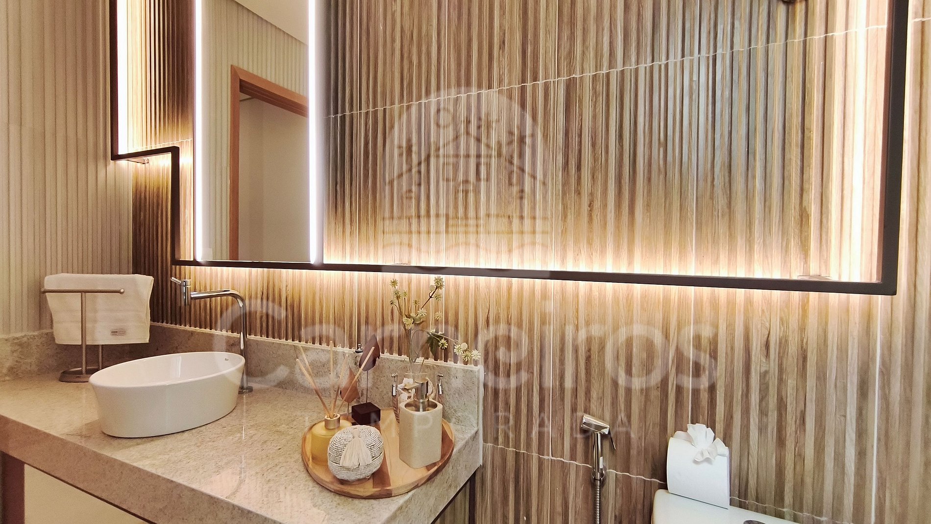 O imóvel oferece duas salas com um design moderno e um ambiente aconchegante. A cozinha é completa com louças, panelas, talheres, geladeira, fogão, forno, sanduicheira, micro-ondas, cafeteira, liquidificador e outros. Para maior comodidade, o imóvel conta 3 banheiros e 1 lavabo.