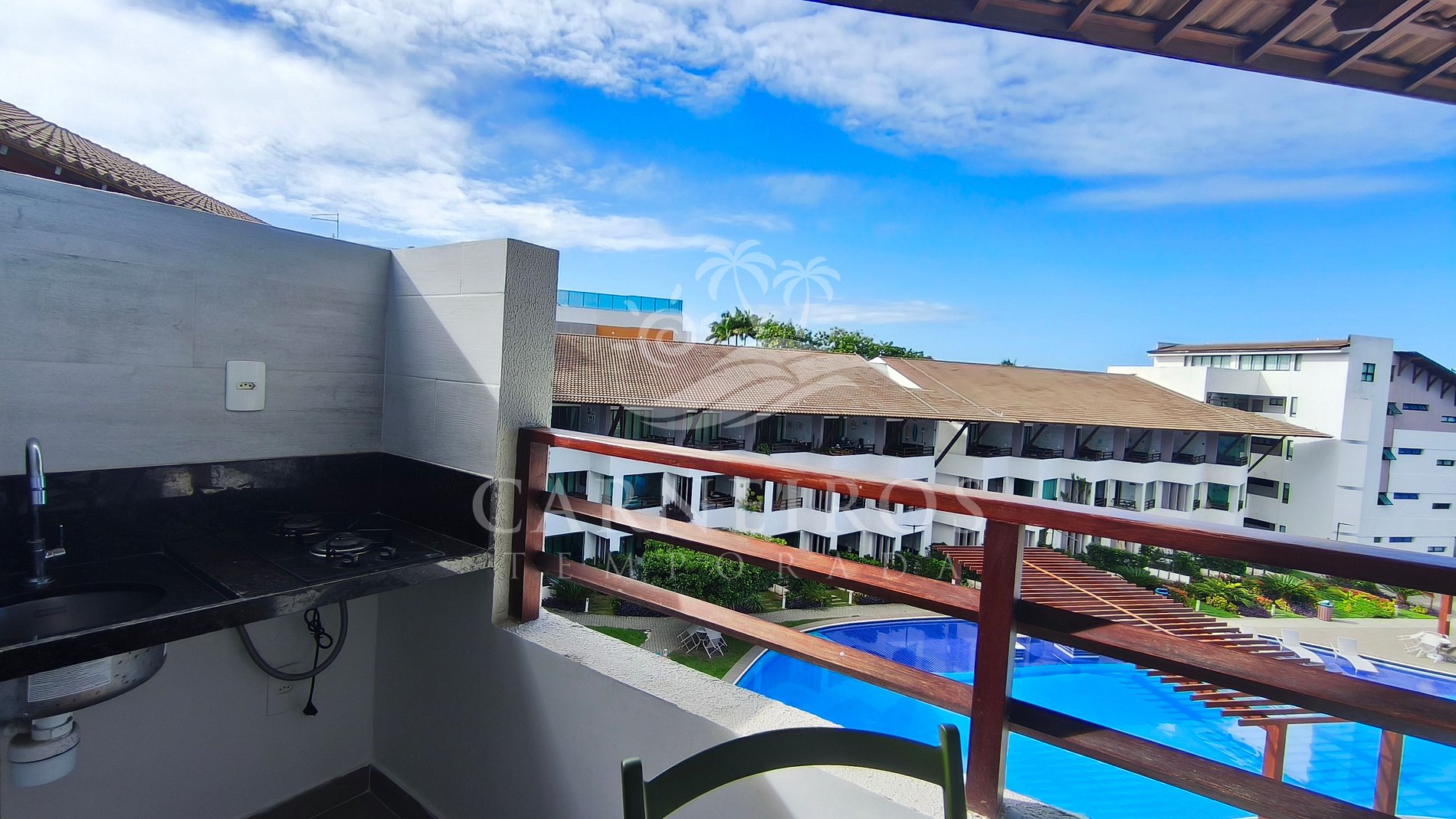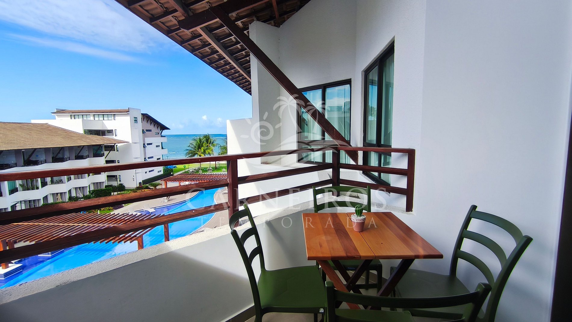 ✹ O flat possui linda varanda com vista da piscina e mar ✹