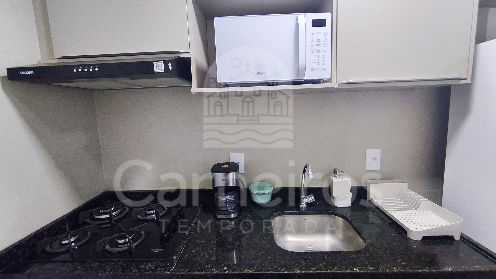 No imóvel você encontrará uma decoração agradável e moderna com TV, sofá e ar-condicionado. A cozinha é completa e possui diversas comodidades como louça, copos, panelas, talheres, cafeteira, micro-ondas, fogão 4 bocas cooktop, geladeira, liquidificador e diversos utensílios. Possui também 01 banheiro completo.