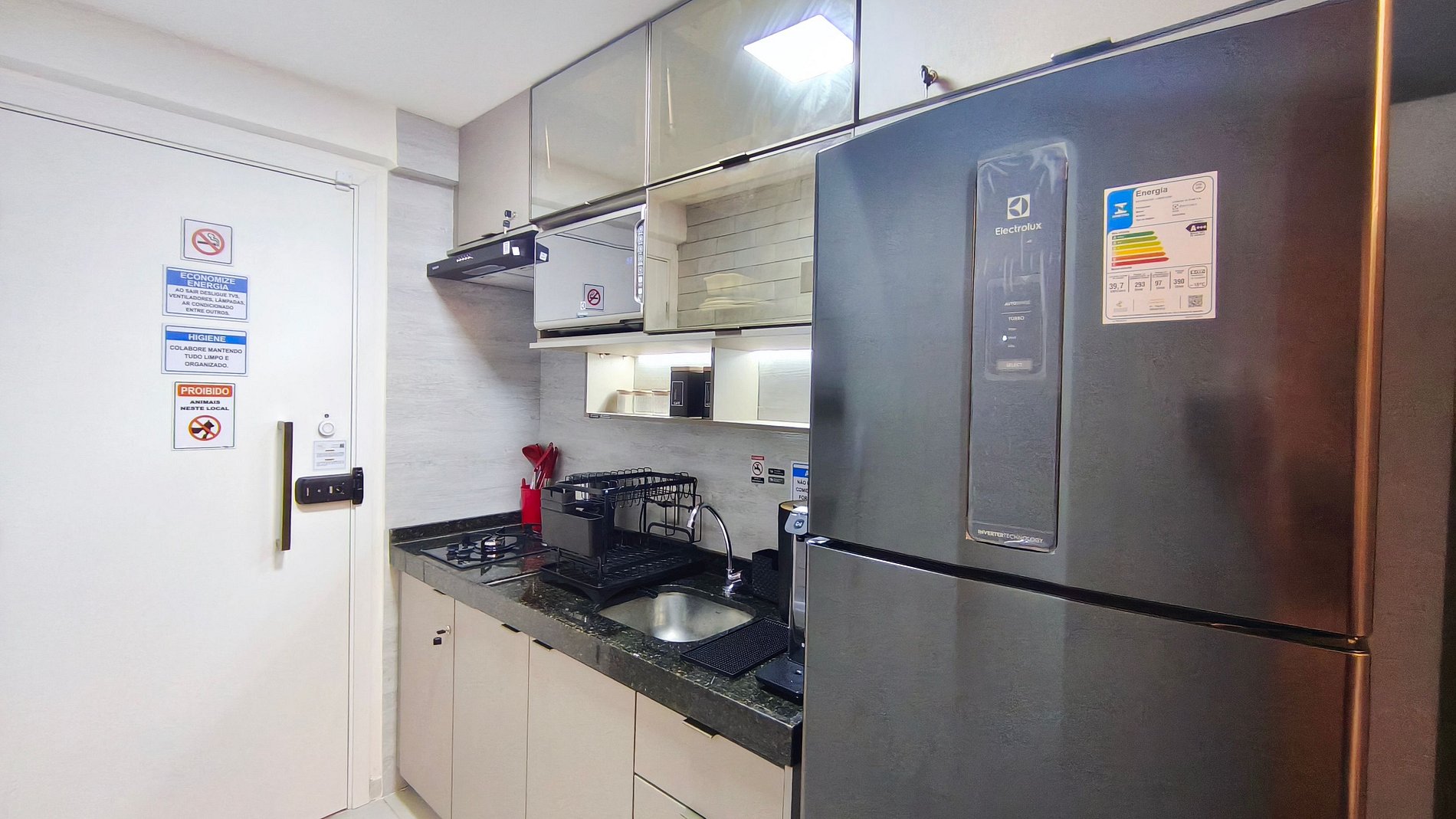 COZINHA: Não é permitido trocar panelas, louças, talheres de um imóvel para outro. Se desejar, sobras de alimentos na geladeira serão retiradas pela equipe de limpeza para serem destinadas a pessoas carentes.