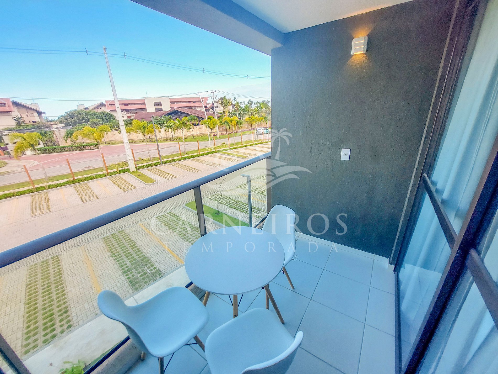 ✹ O flat se encontra no primeiro andar do prédio, possui vista para o estacionamento e varanda com mesa e 3 cadeiras ✹