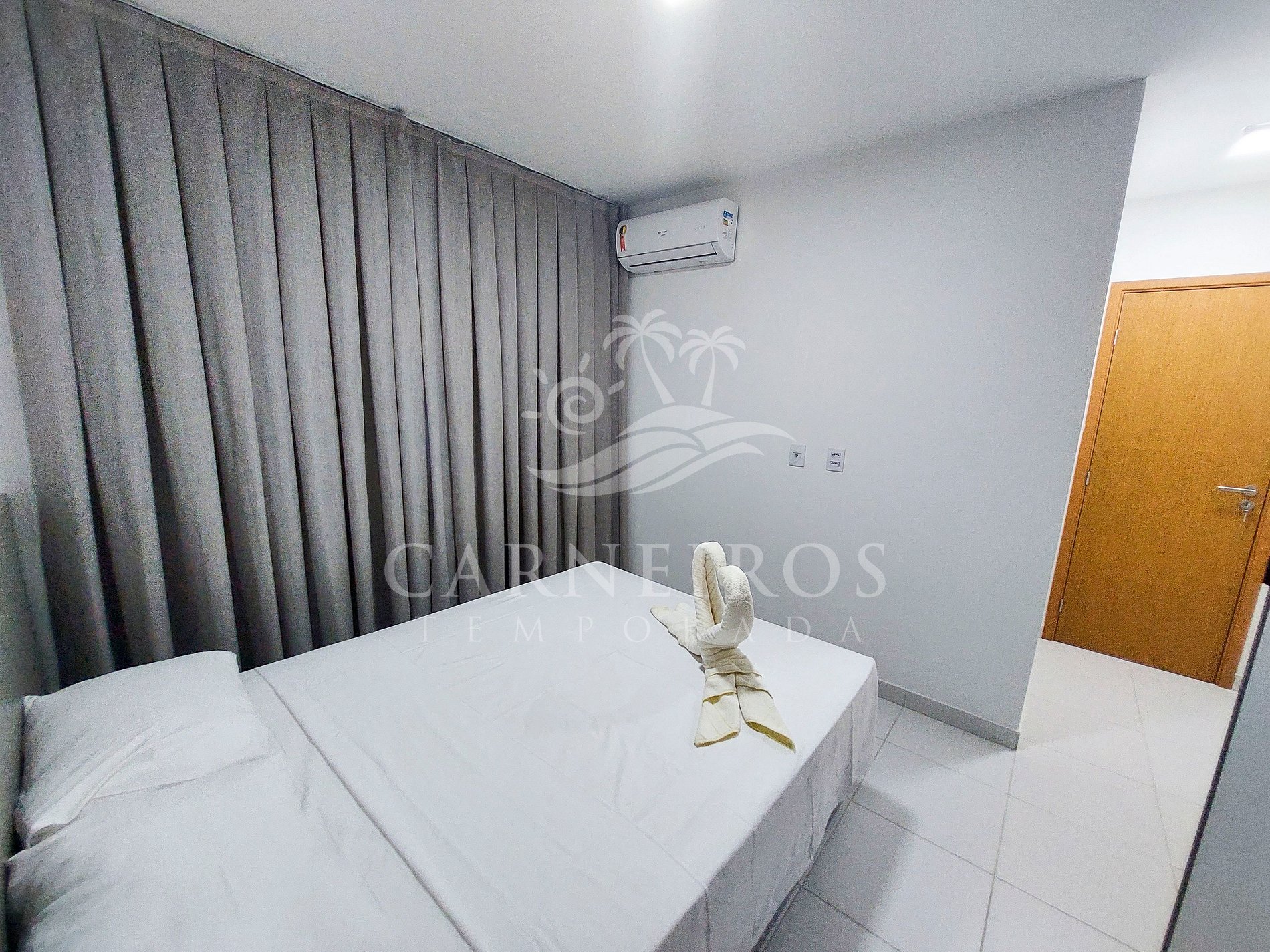 - Suíte 01: Cama box de casal, armário, ar-condicionado e banheiro;