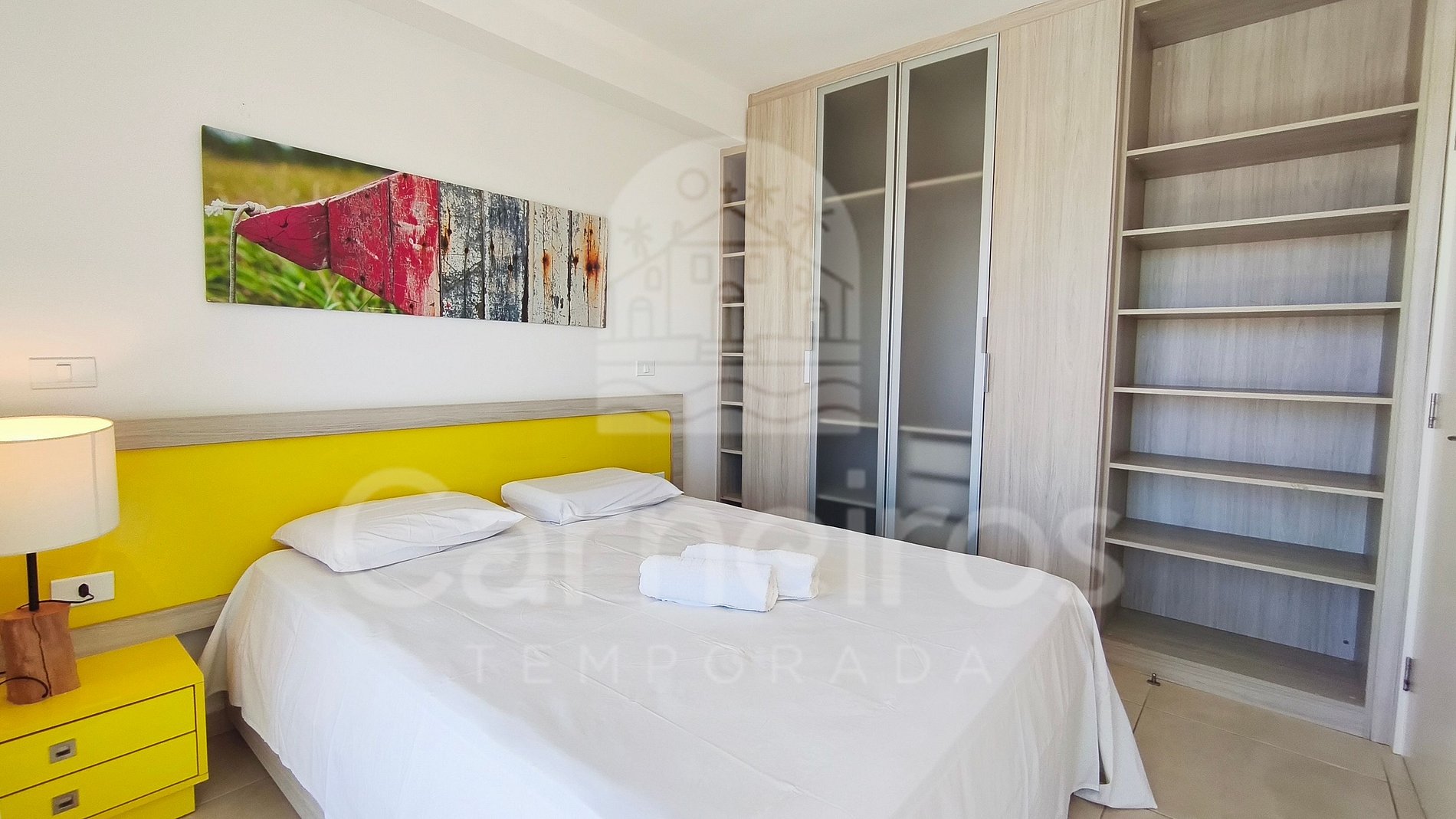 Quarto: 1 cama de casal, armário e ar-condicionado.