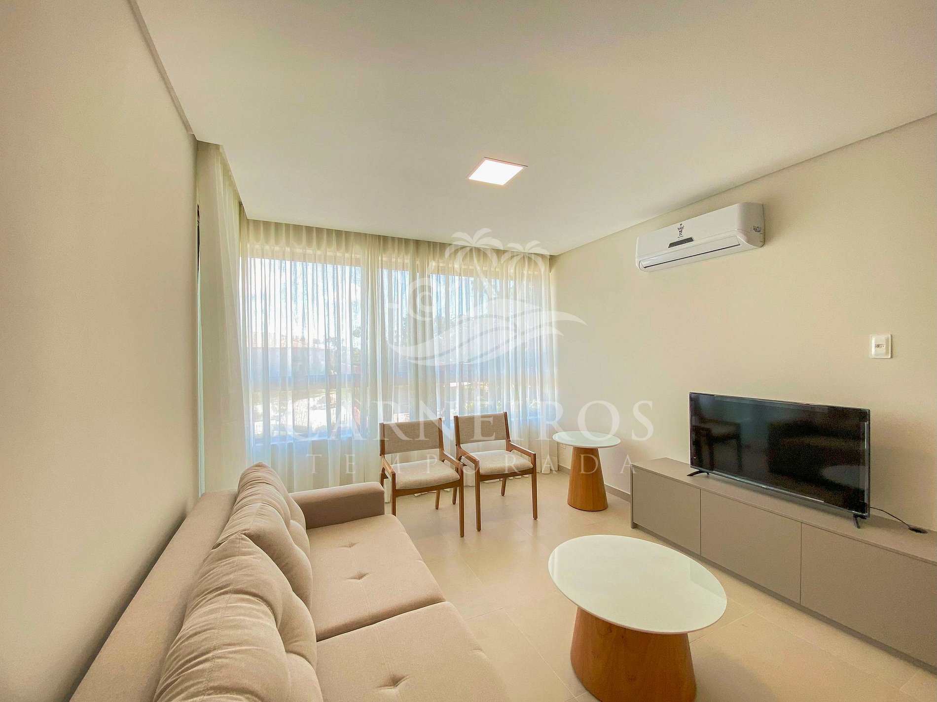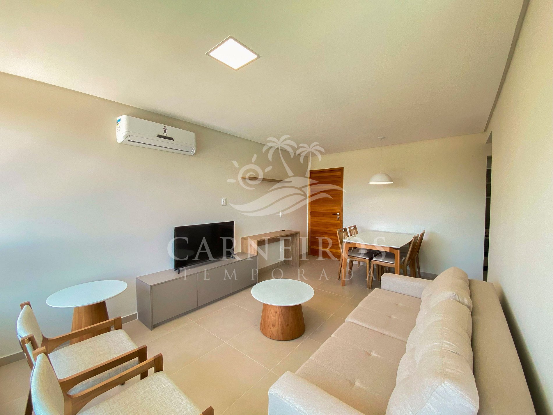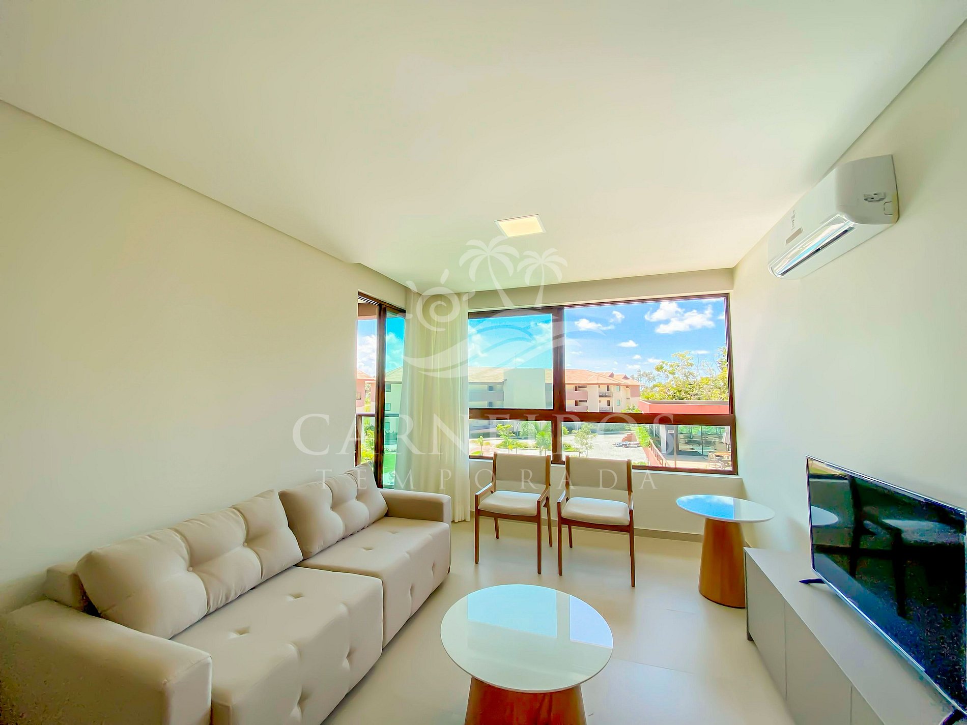 - Sala de estar: Sofá retrátil, ar-condicionado e TV;
