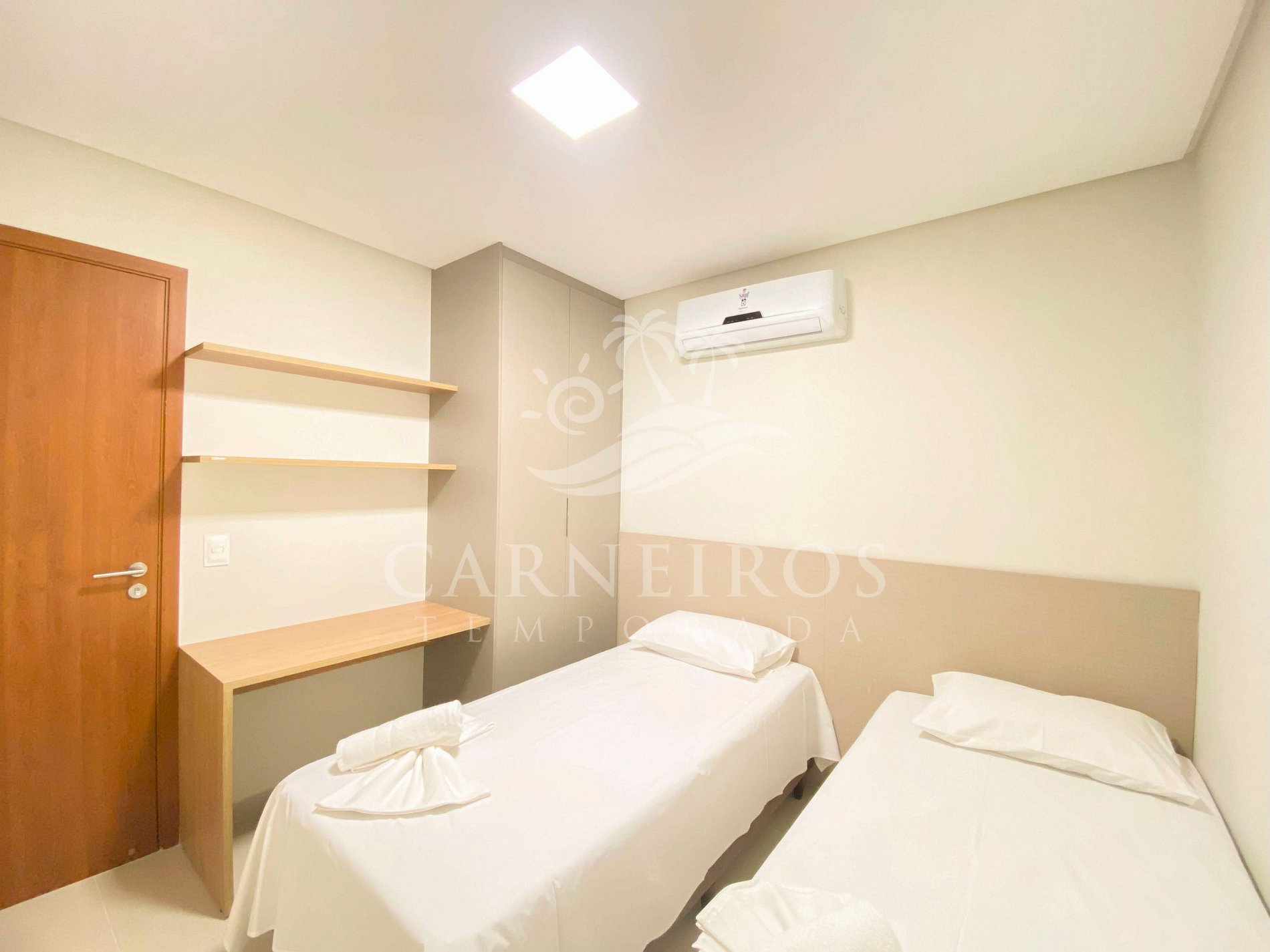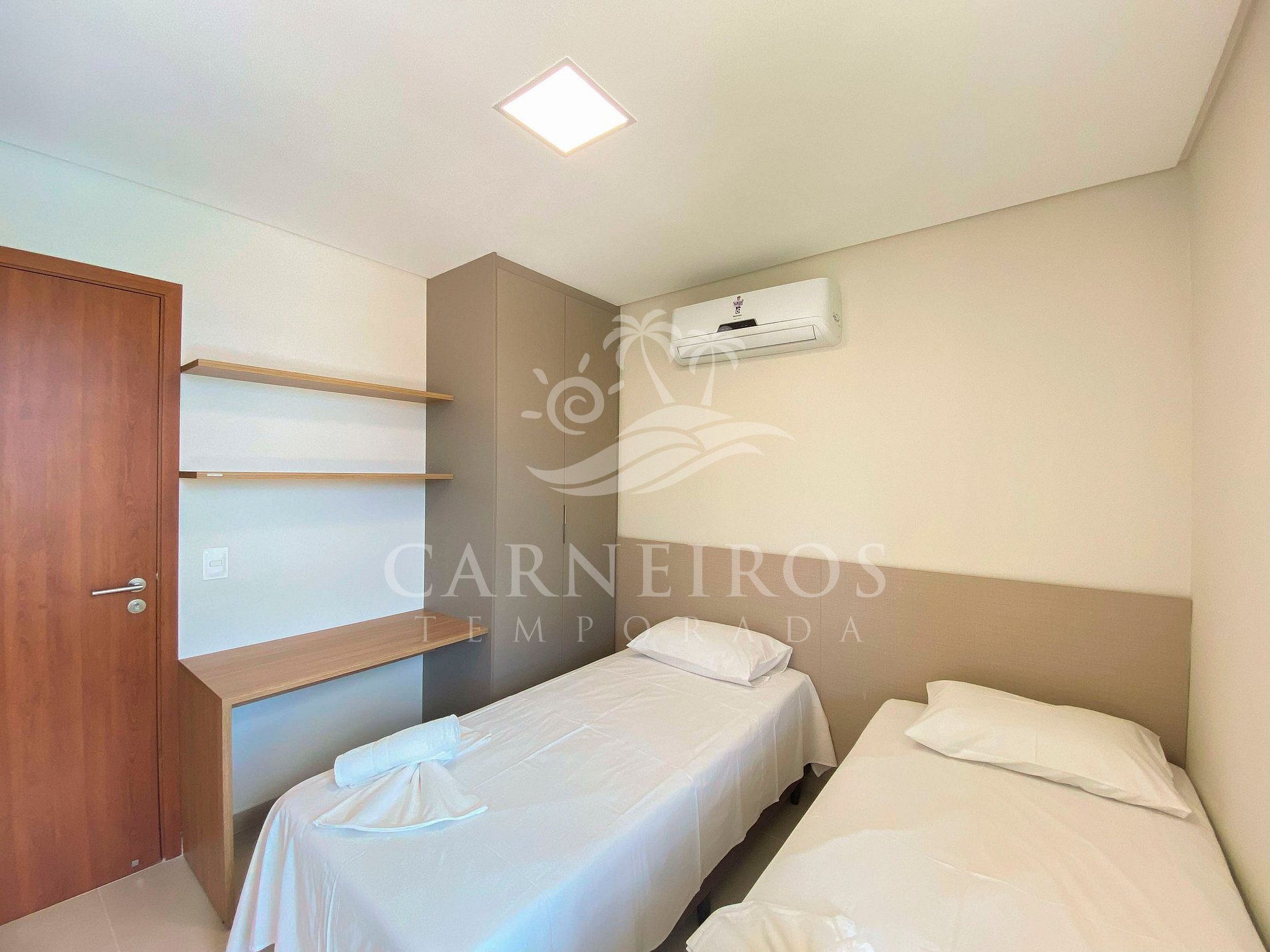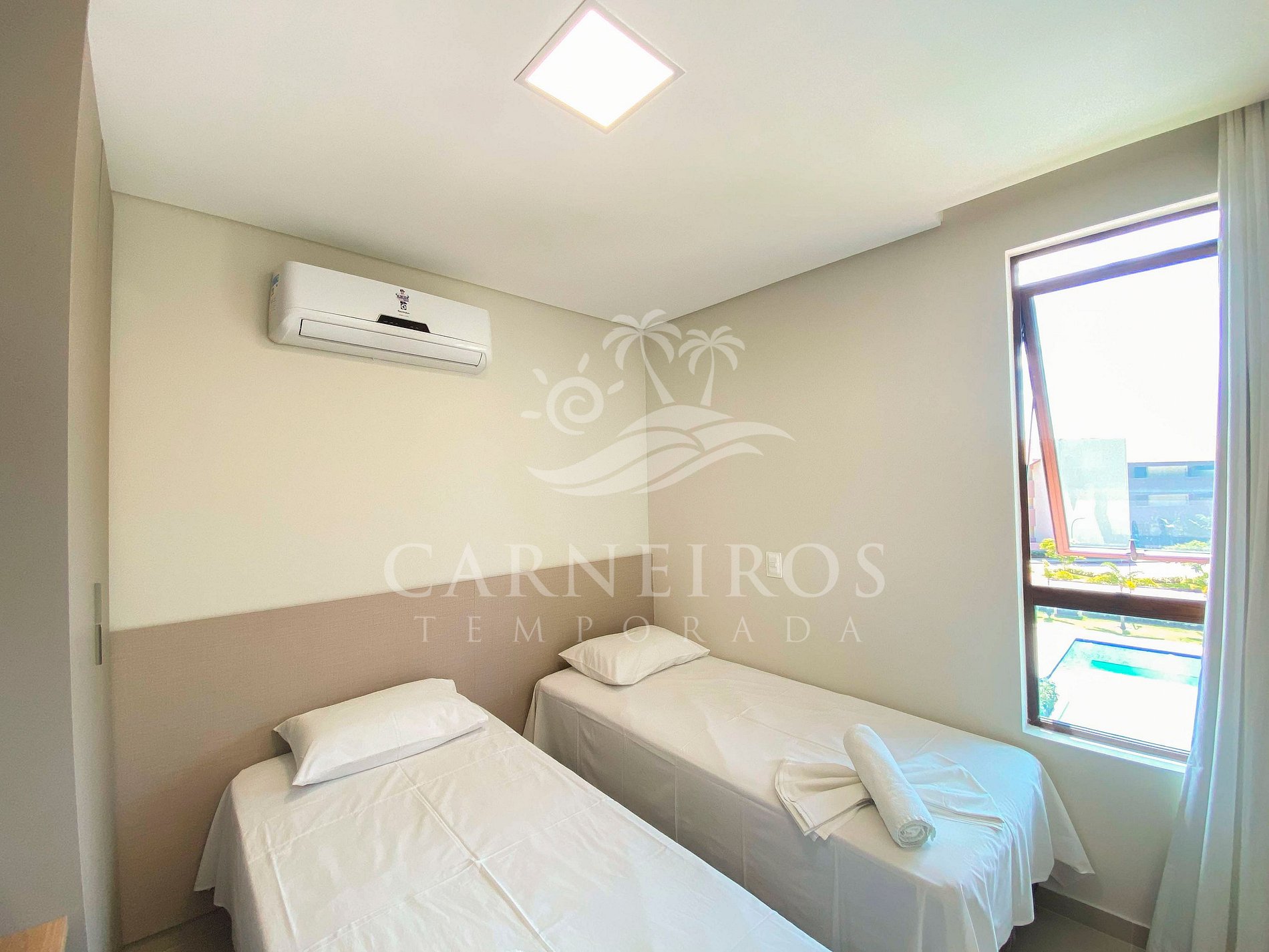 - Quarto 02: 2 camas de solteiro, ar-condicionado e armário;