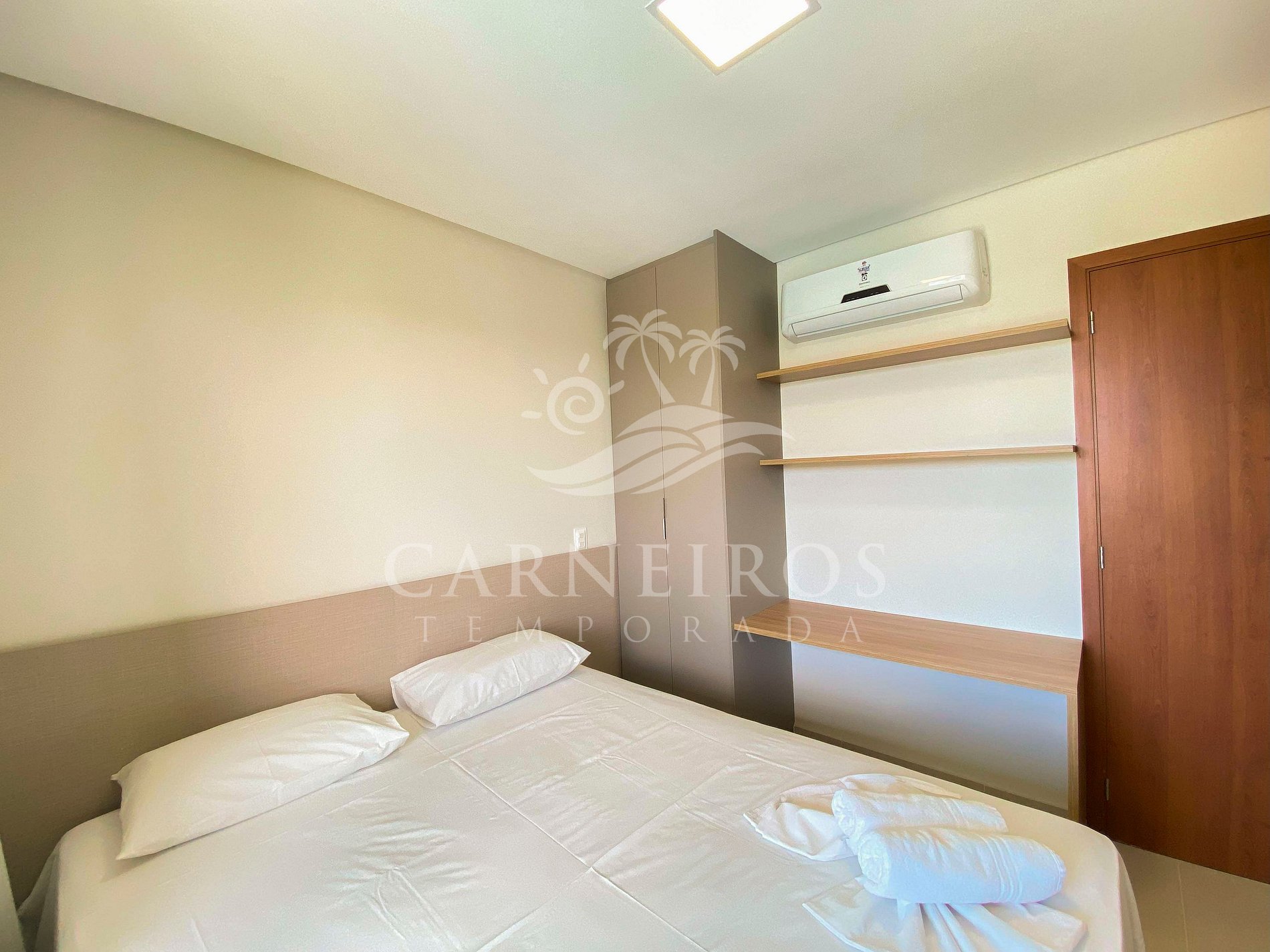 - Quarto 01: Cama de casal, ar-condicionado e armário;