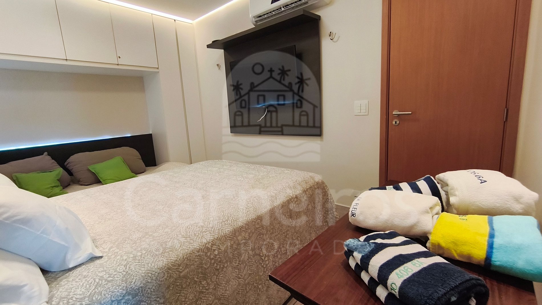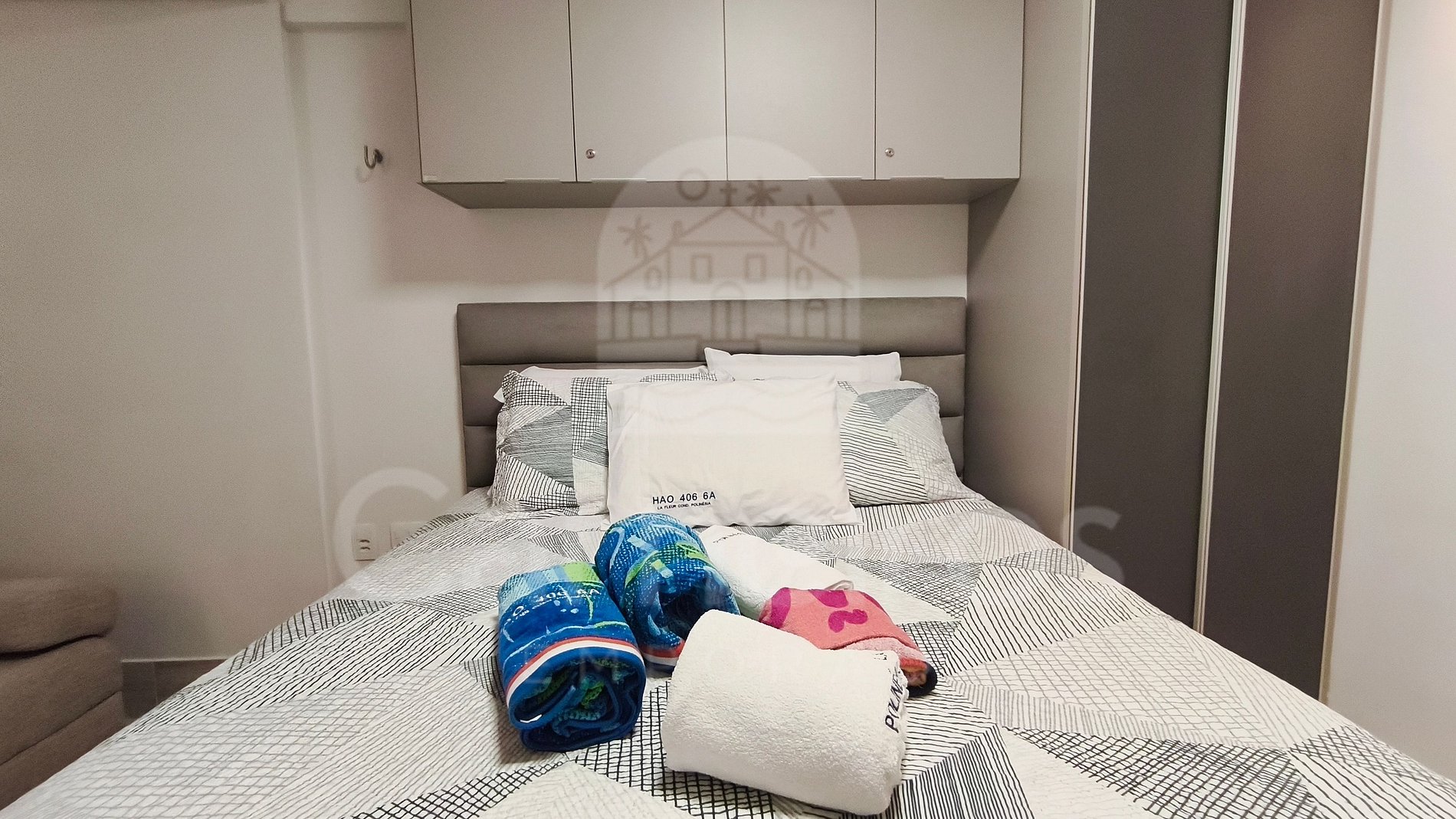 - Quarto 02: 01 cama box de casal + 01 sofá cama casal (acomoda até 04 pessoas), armário e ar-condicionado;