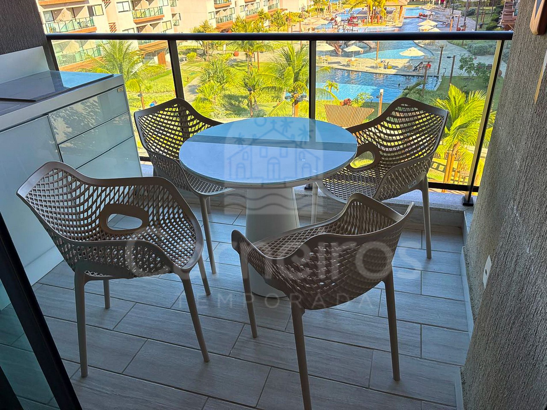 ✹ O flat acomoda até 08 pessoas e se encontra no quarto andar do prédio com vista para as piscinas naturais, piscinas do condomínio e tem acesso por elevador. Conta com varanda, quatro cadeiras e mesa. ✹