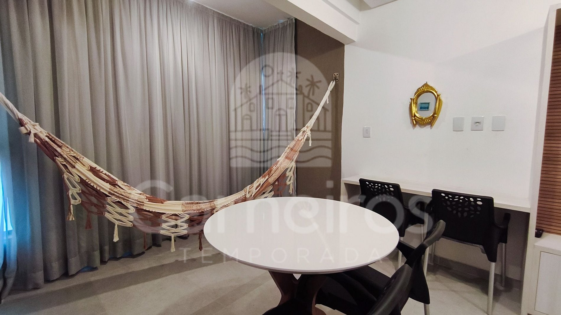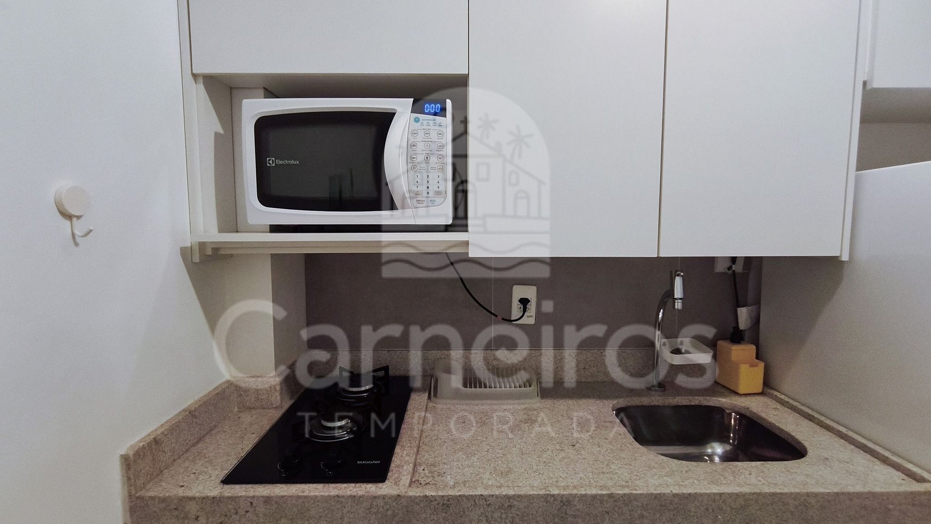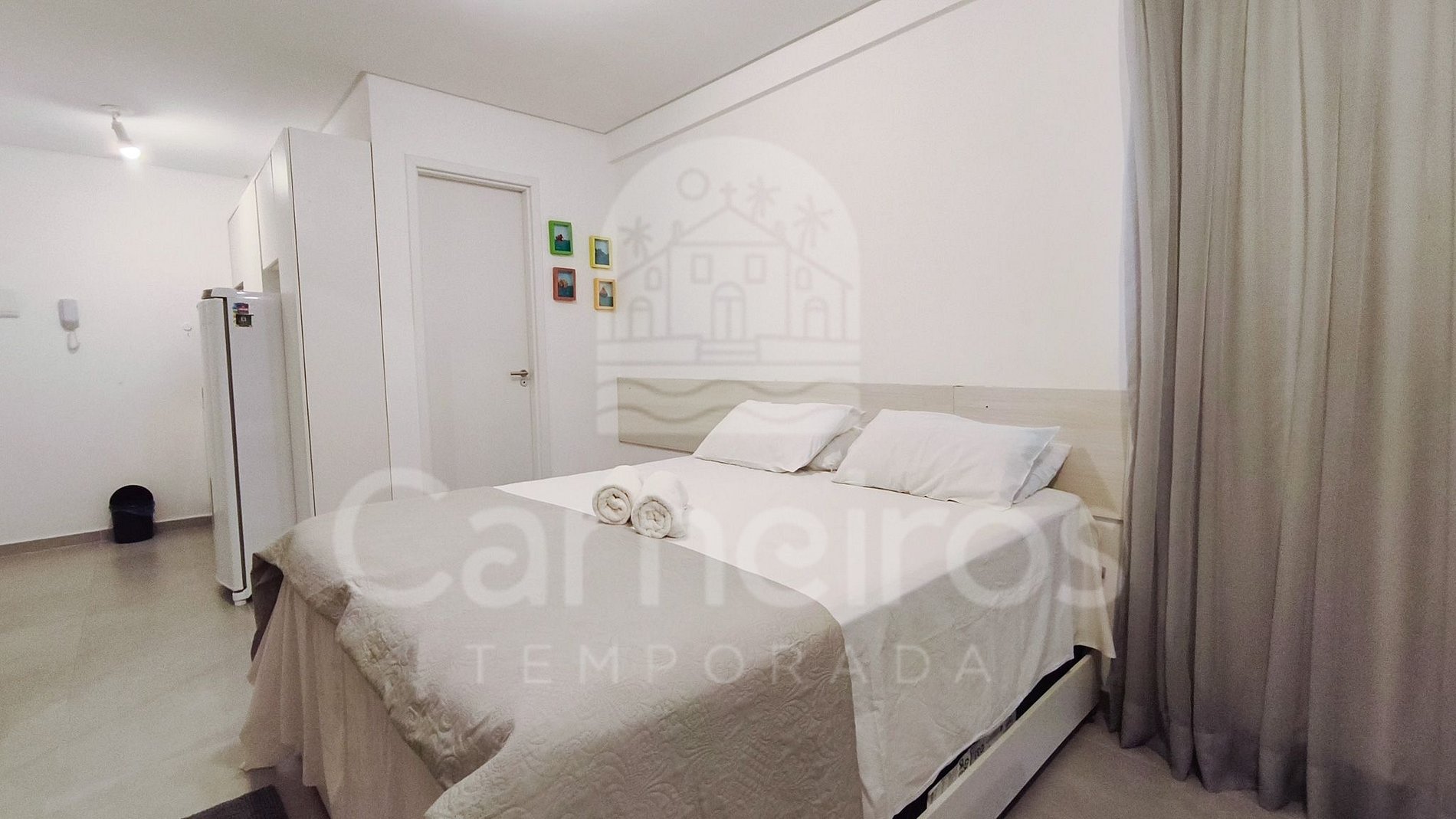 No ambiente, além da decoração moderna, você encontrará uma TV, ar-condicionado e cama com bicamas. A cozinha é completa e equipada com os principais itens como louça, copos, panelas, talheres, sanduicheira, liquidificador, micro-ondas, fogão, geladeira e diversos utensílios. O studio possui 1 banheiro completo.