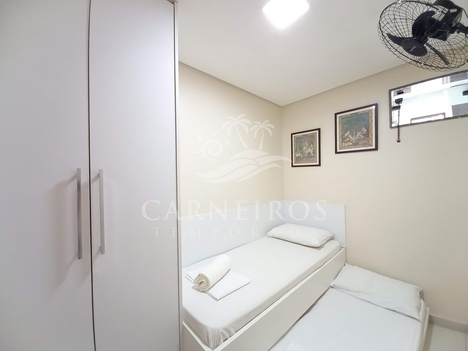 - Quarto 02: 1 cama de solteiro + 1 bicama, armário, exaustor e ventilador.