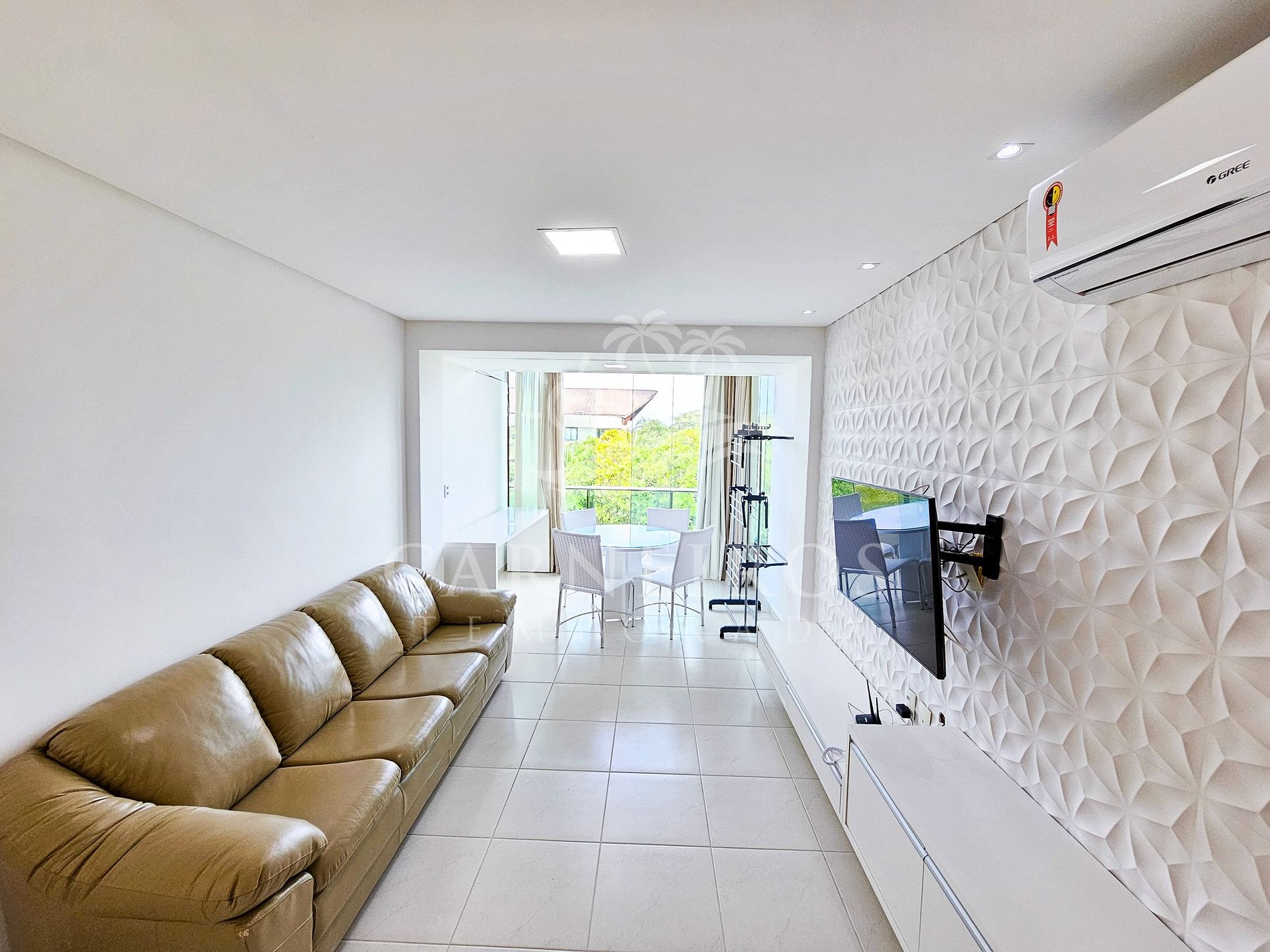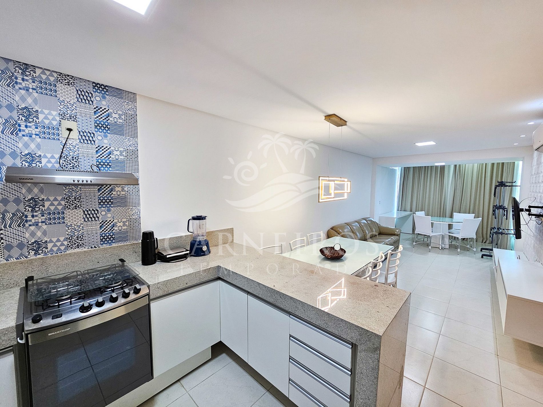 Na sala de estar você encontrará uma decoração agradável, TV e ar-condicionado. A cozinha é completa e possui itens como louça, copos, panelas, talheres, sanduicheira, micro-ondas, fogão 04 bocas, forno, geladeira e diversos utensílios. Além disso, temos uma mesa com quatro cadeiras. O flat possui 02 banheiros completos.