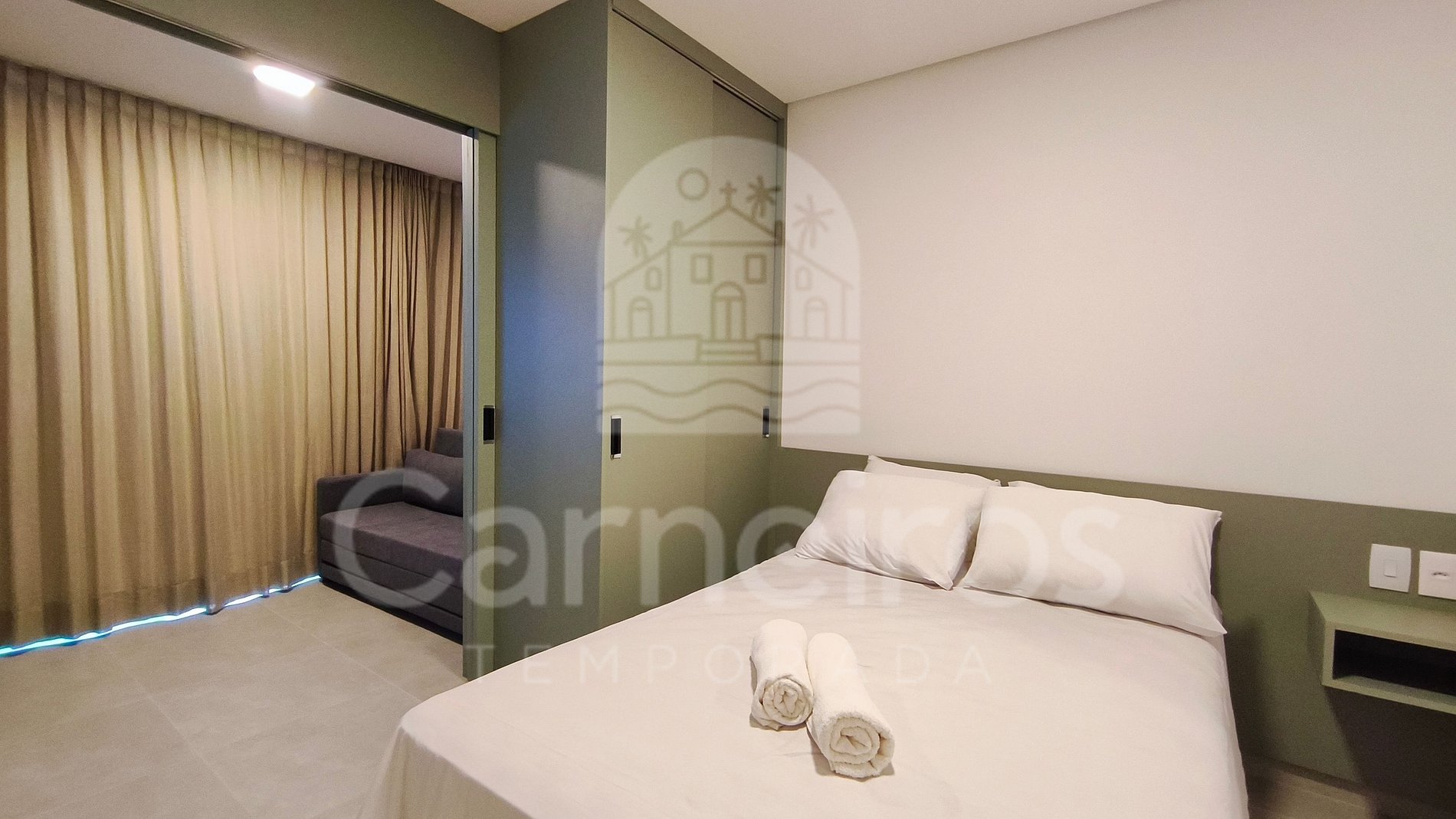 - Camas: 1 sofá-cama casal + 1 cama de casal;