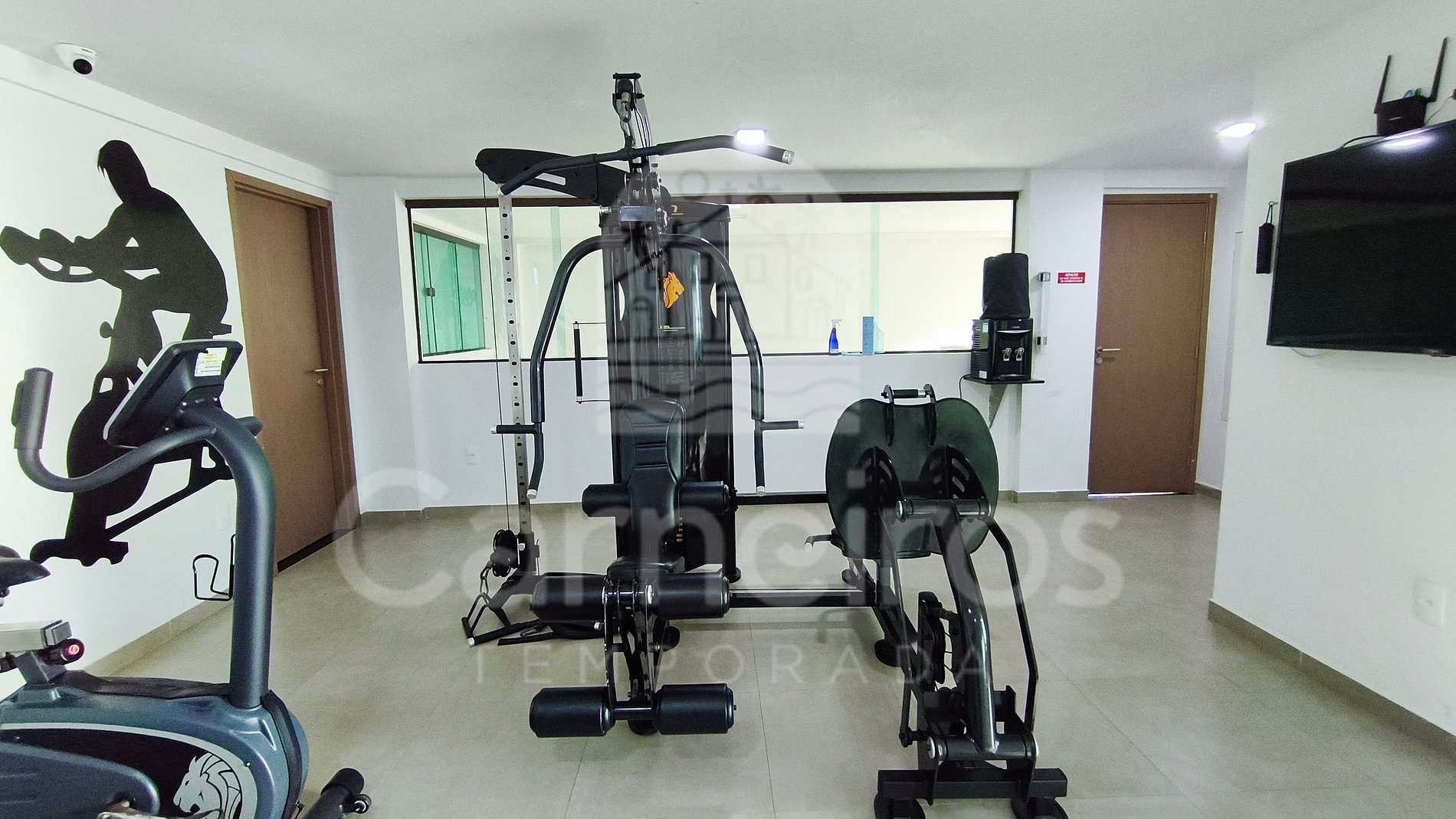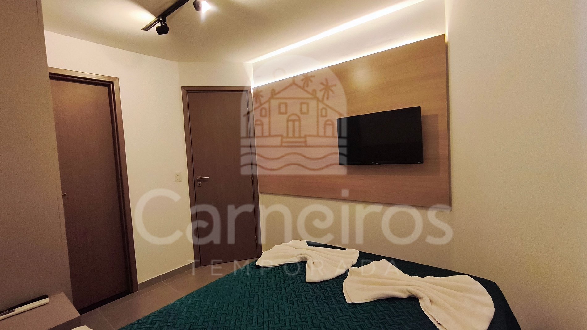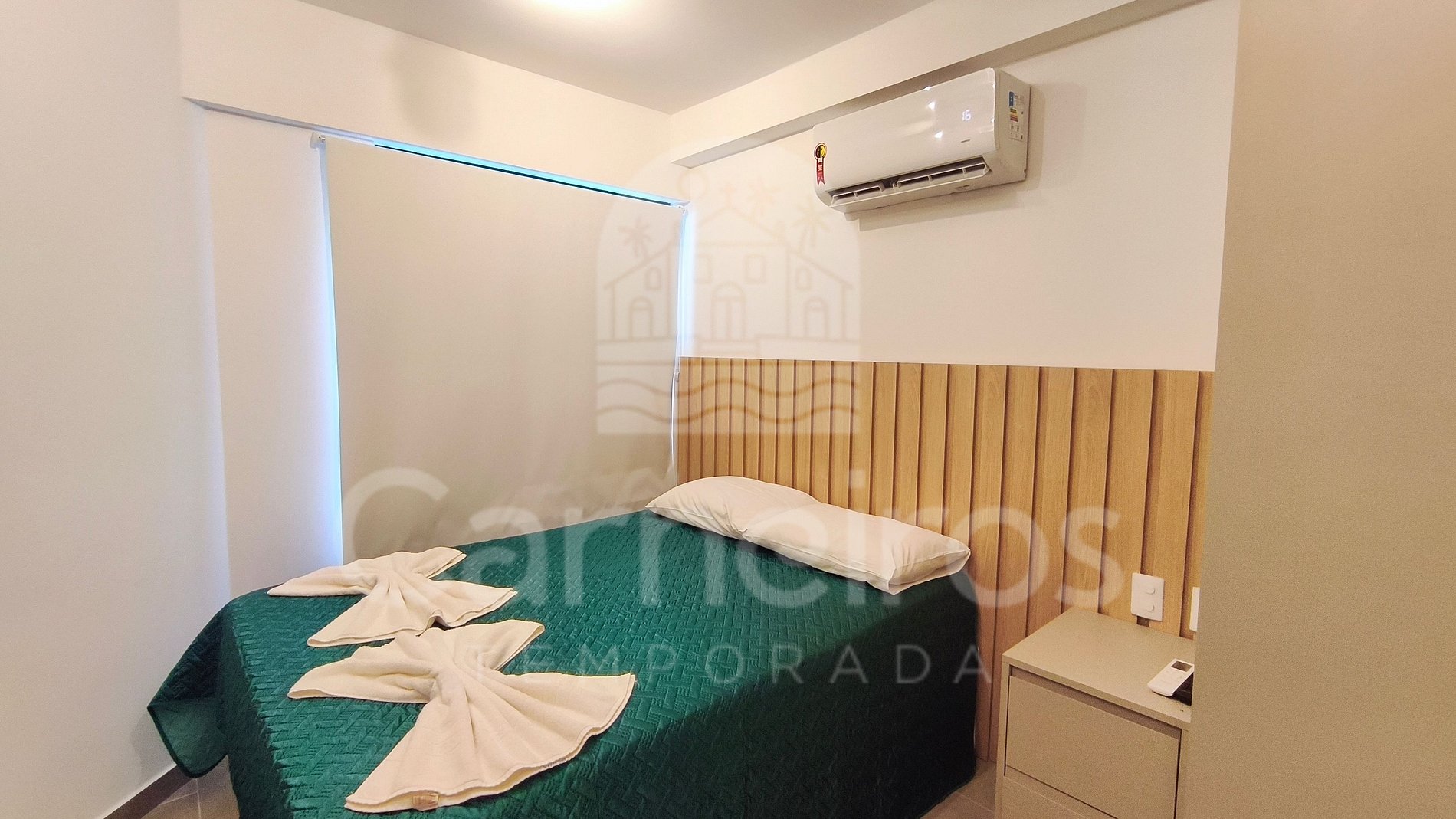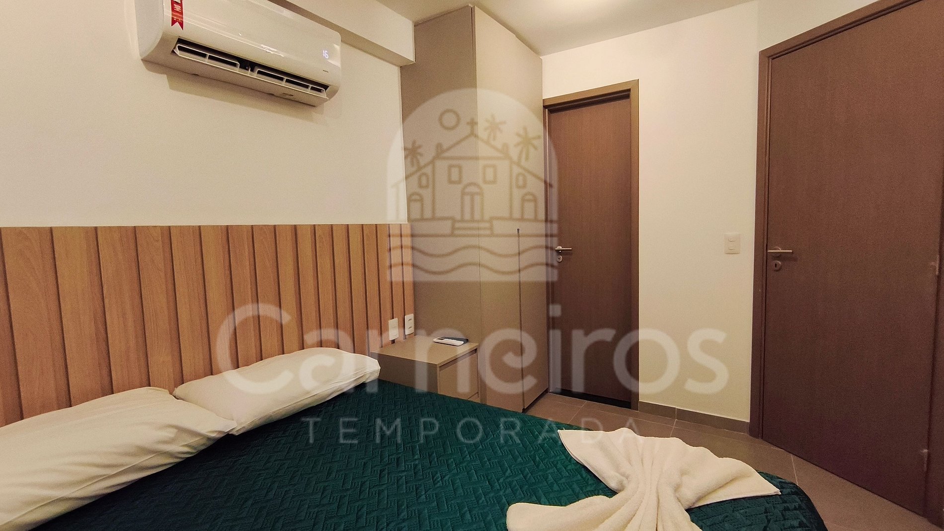 - Quarto 01: 1 cama de casal, armário, TV e ar-condicionado.