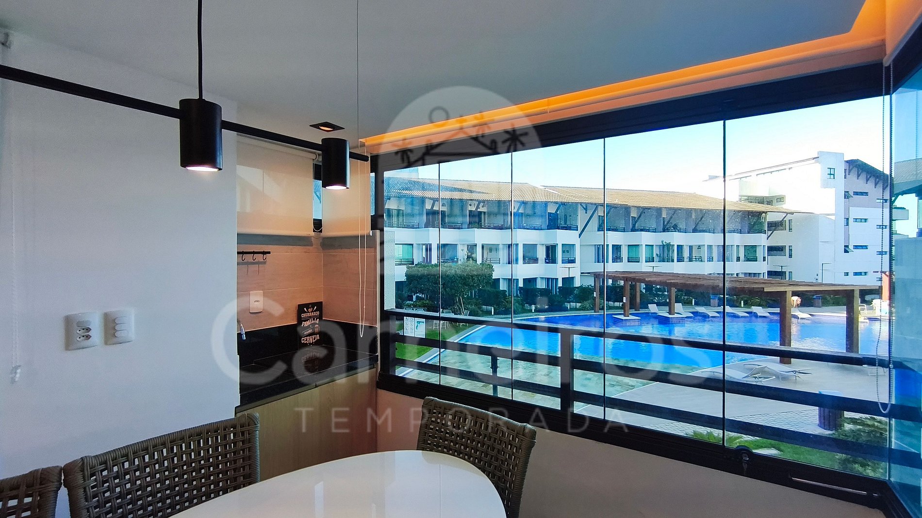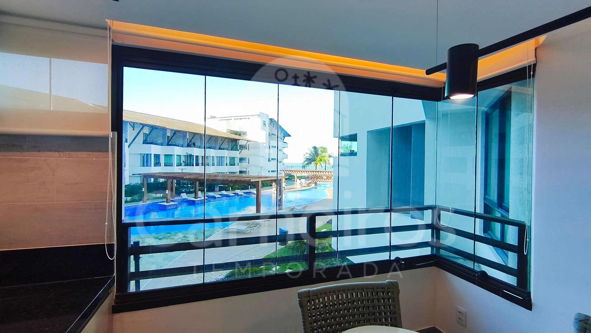 ✹ O flat possui linda varanda com vista da piscina e mar ✹