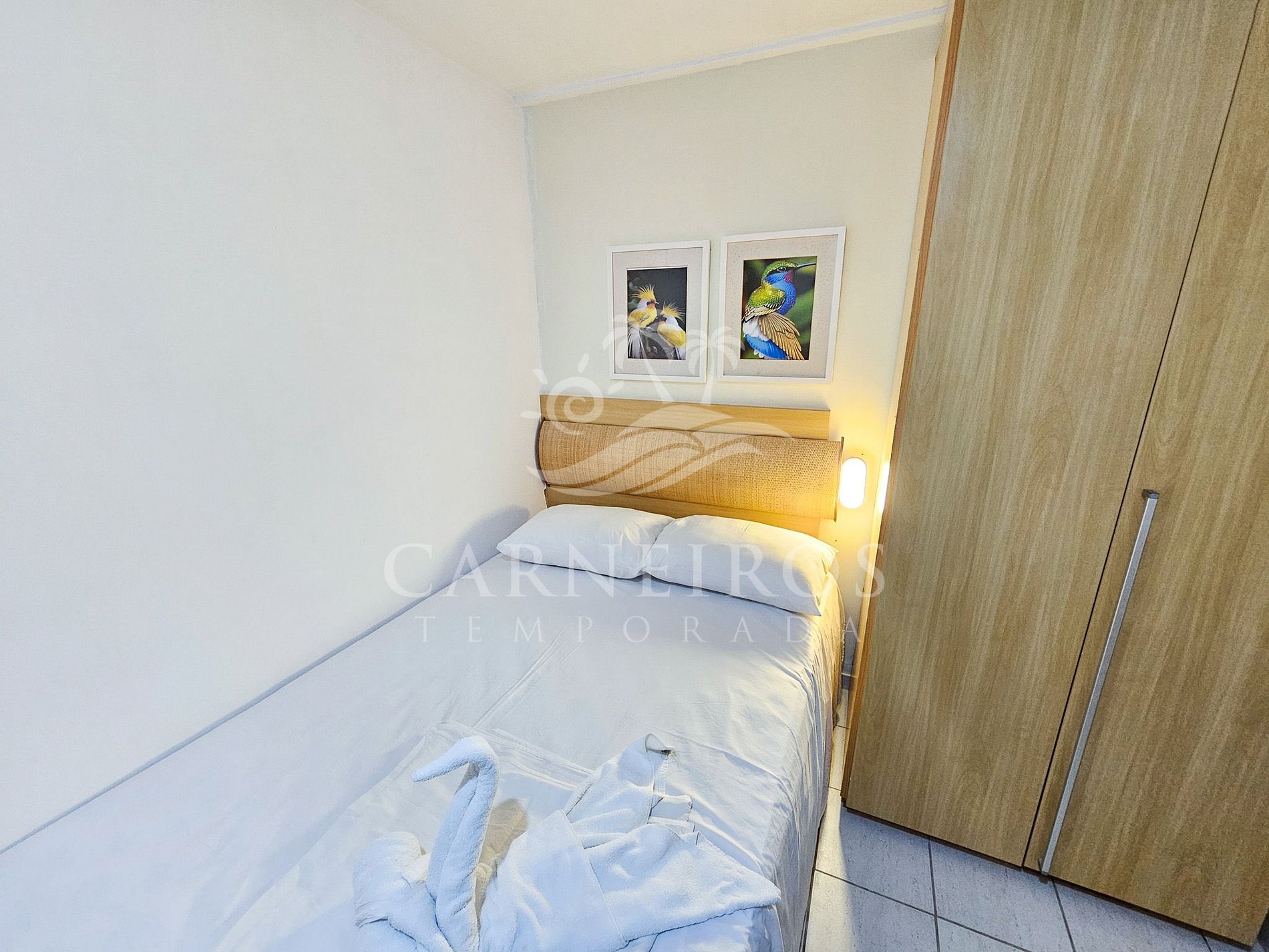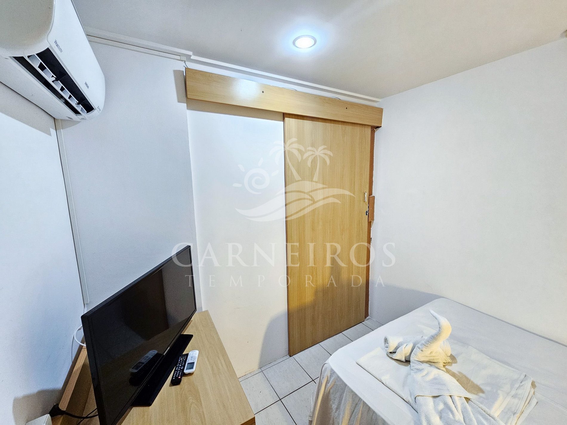 - Quarto 01: 1 cama de casal, armário, TV e ar-condicionado;