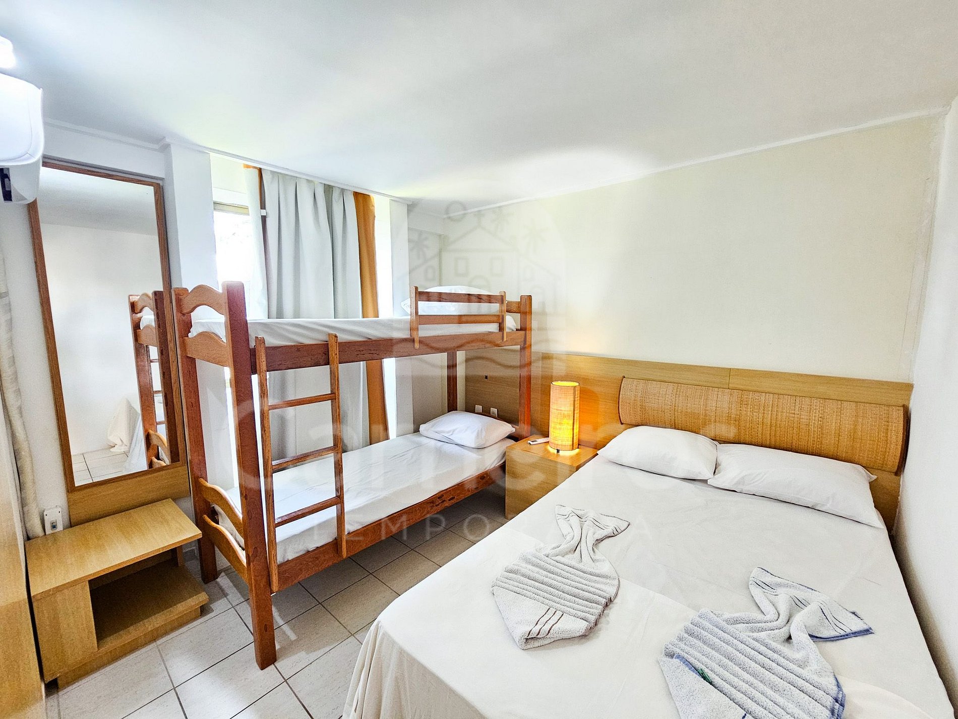 - Quarto 02: 1 cama de casal + 01 beliche de solteiro e ar-condicionado;