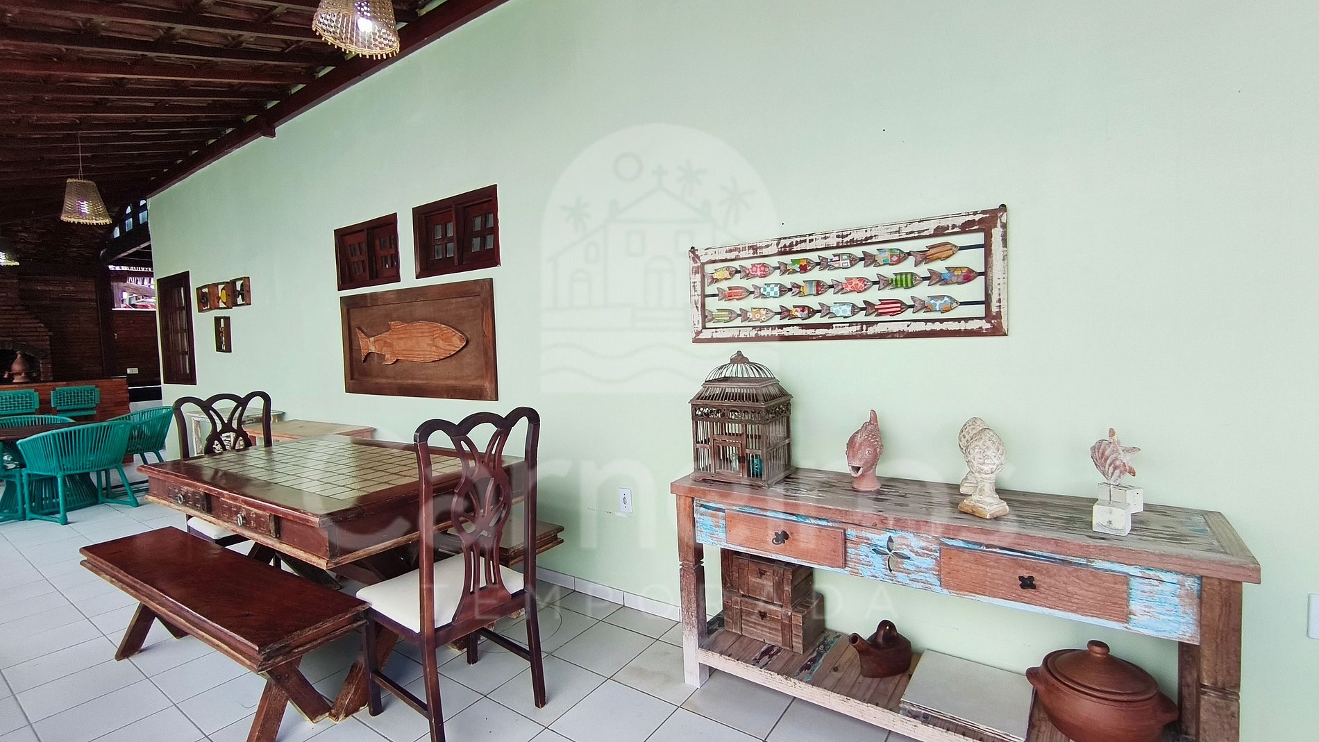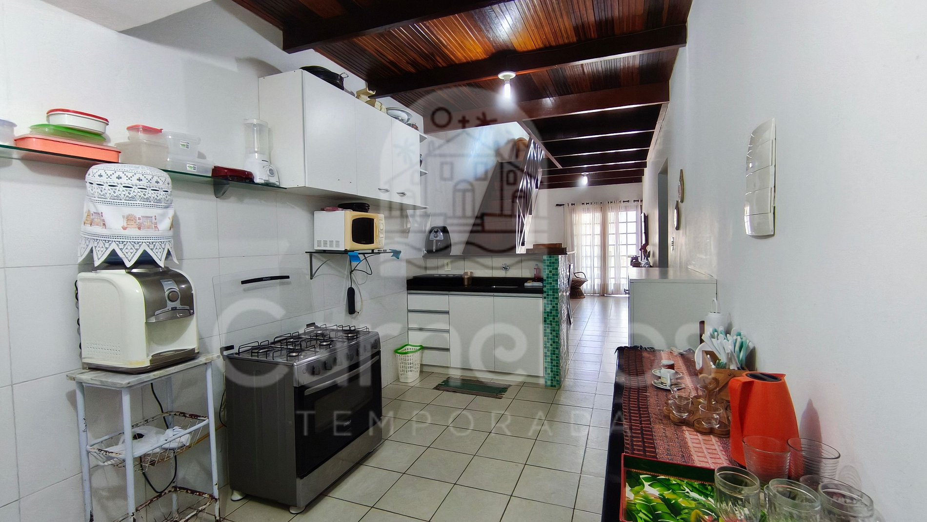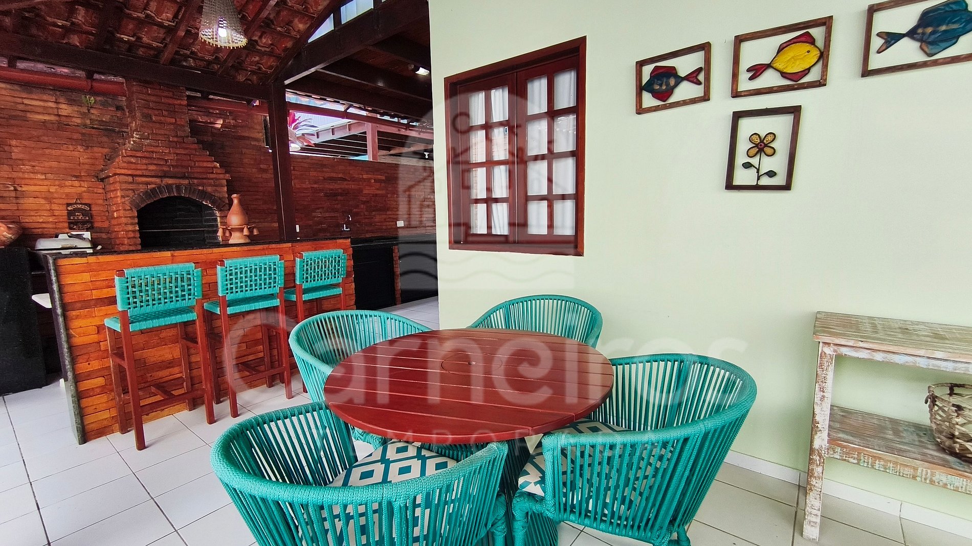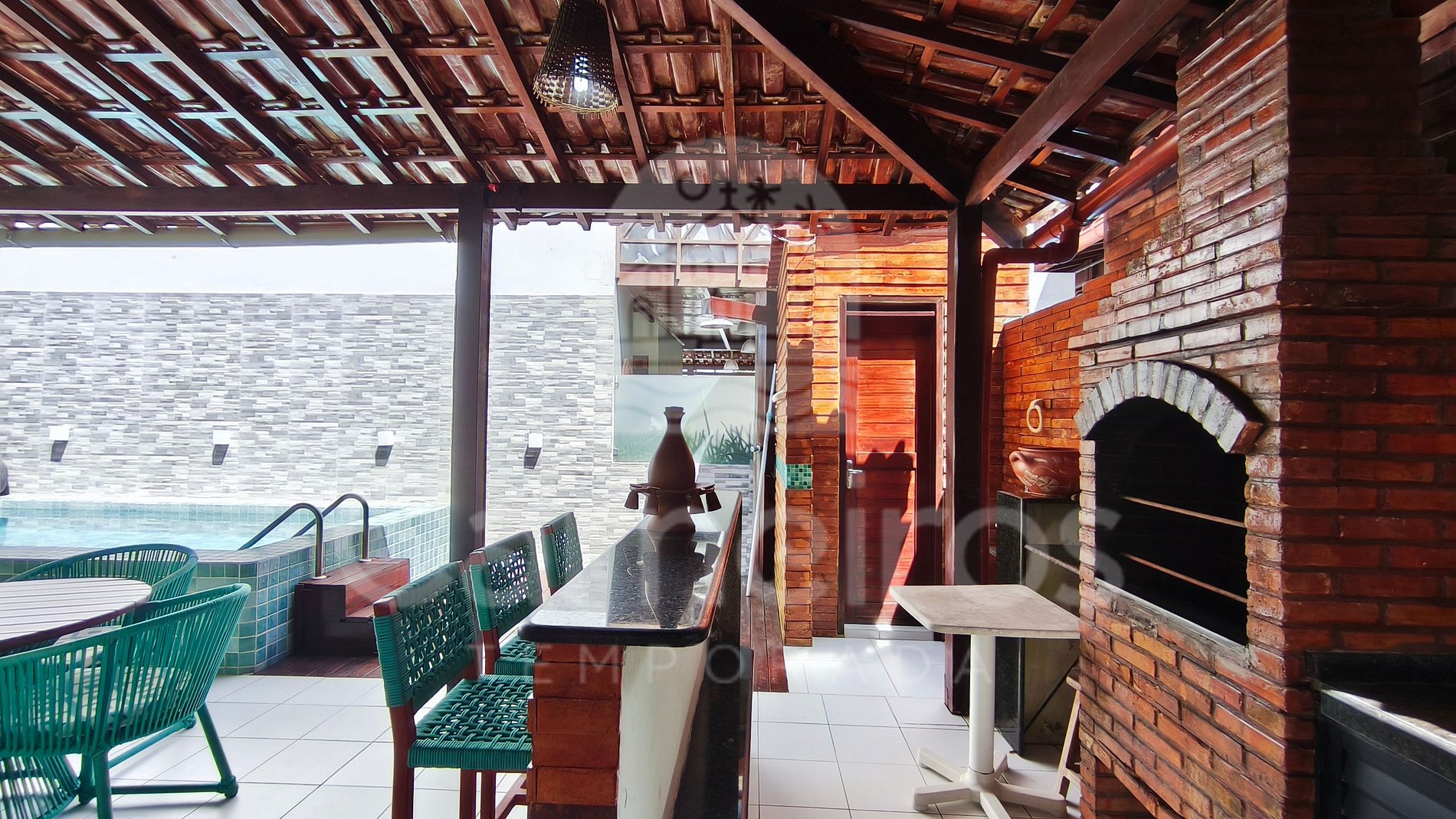 Projetada para oferecer conforto, a sala possui uma decoração aconchegante e está equipada com sofá, cadeiras e mesa de jantar. A cozinha apresenta todos os utensílios e equipamentos necessários, como louças, copos, panelas, talheres, fogão, airfryer, micro-ondas, liquidificador, bebedouro elétrico, sanduicheira, e diversos utensílios. A propriedade conta com cinco banheiros completos, disponibiliza ferro de passar e maquina de lavar roupas.