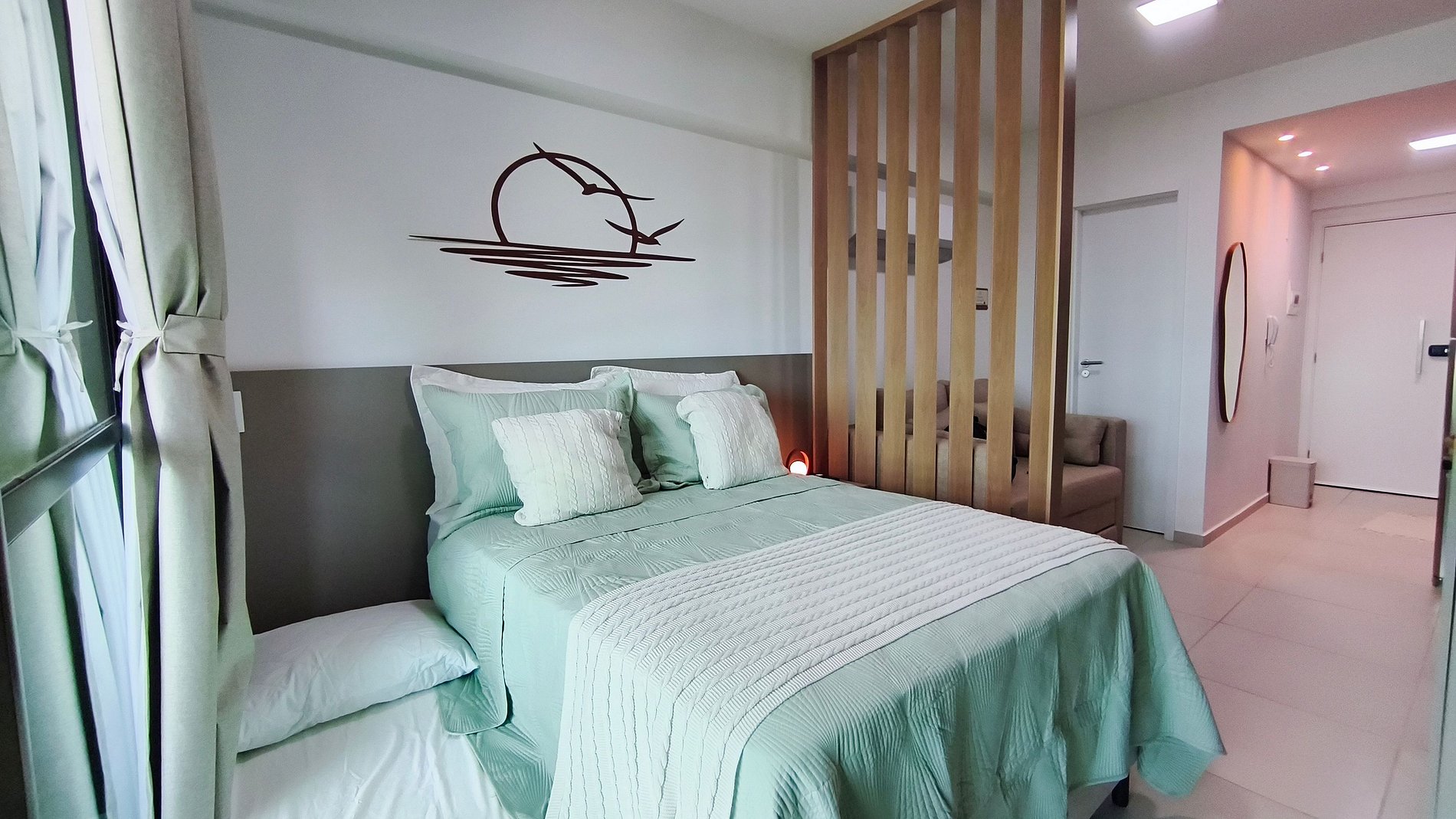 - Studio: 1 Cama casal + 1 Cama auxiliar de solteiro +1 Sofá-cama casal, TV e ar-condicionado.
