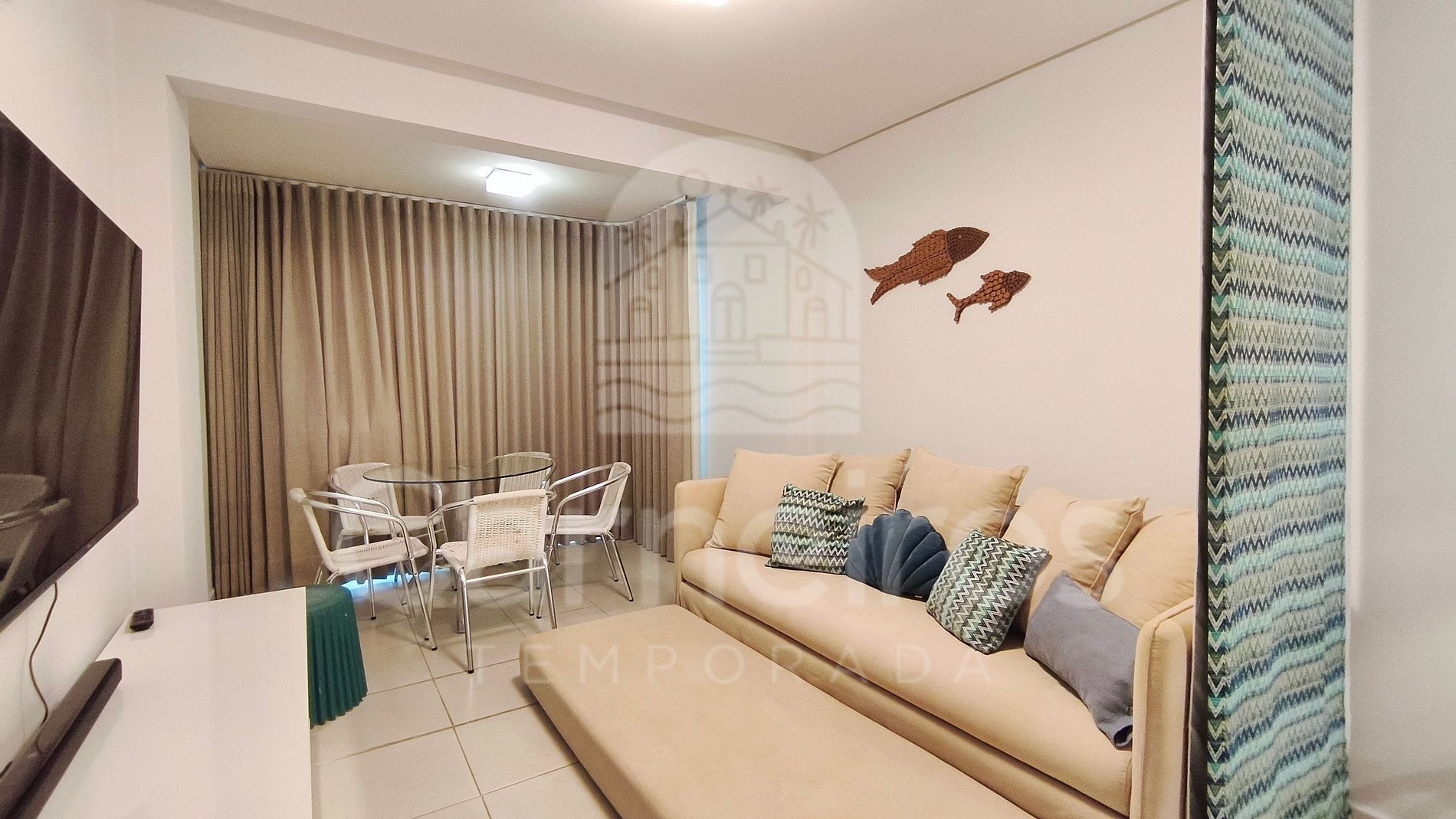 - Sala: 1 Sofá-cama de solteiro, ar-condicionado e TV;