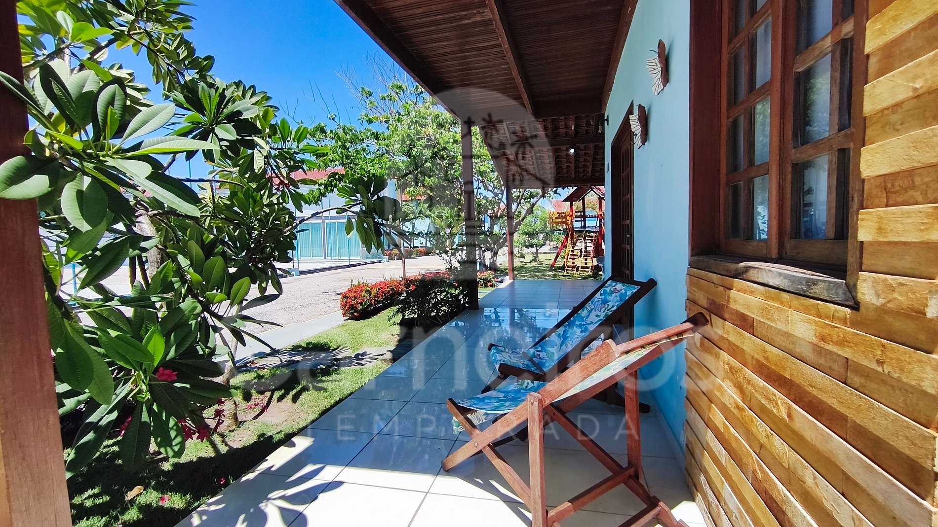 ✹ A casa se encontra no térreo do condomínio com vista para o jardim e possui uma linda varanda com quatro cadeiras e mesa. ✹