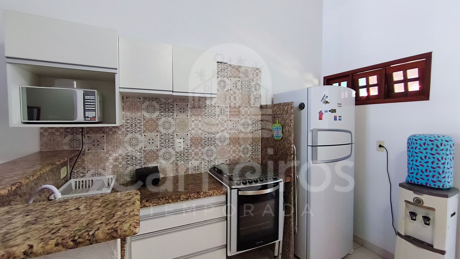 Na sala de estar você encontrará TV, sofá, mesa e uma decoração aconchegante. A cozinha é completa e possui diversas comodidades como geladeira, fogão 04 bocas, forno, micro-ondas, louça, copos, pratos, talheres e diversos utensílios. Possui também 03 banheiros completos, sendo 2 suítes.