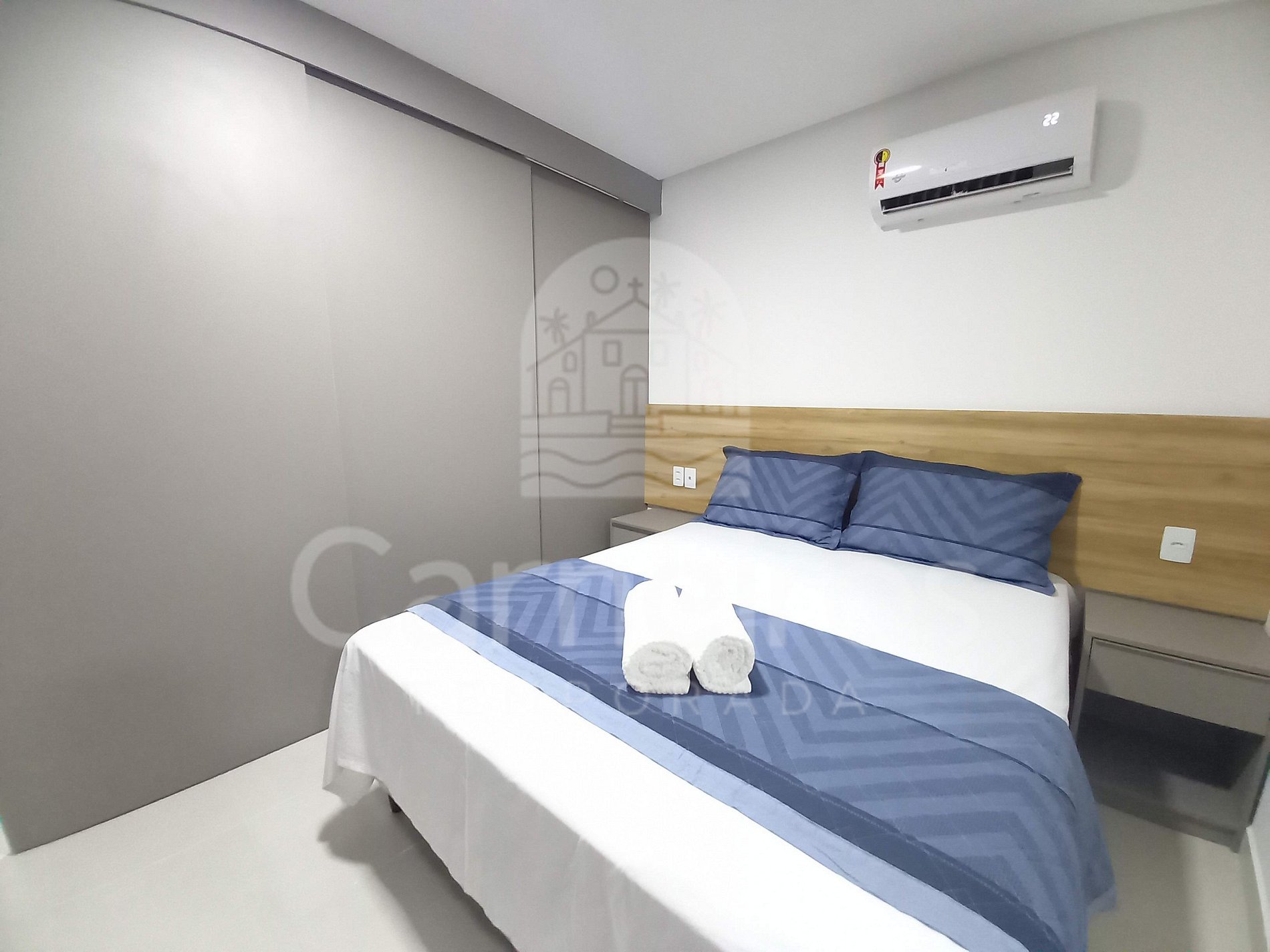 - Possui 1 camas de casal queen, TV, armários para bagagem e ar-condicionado split;